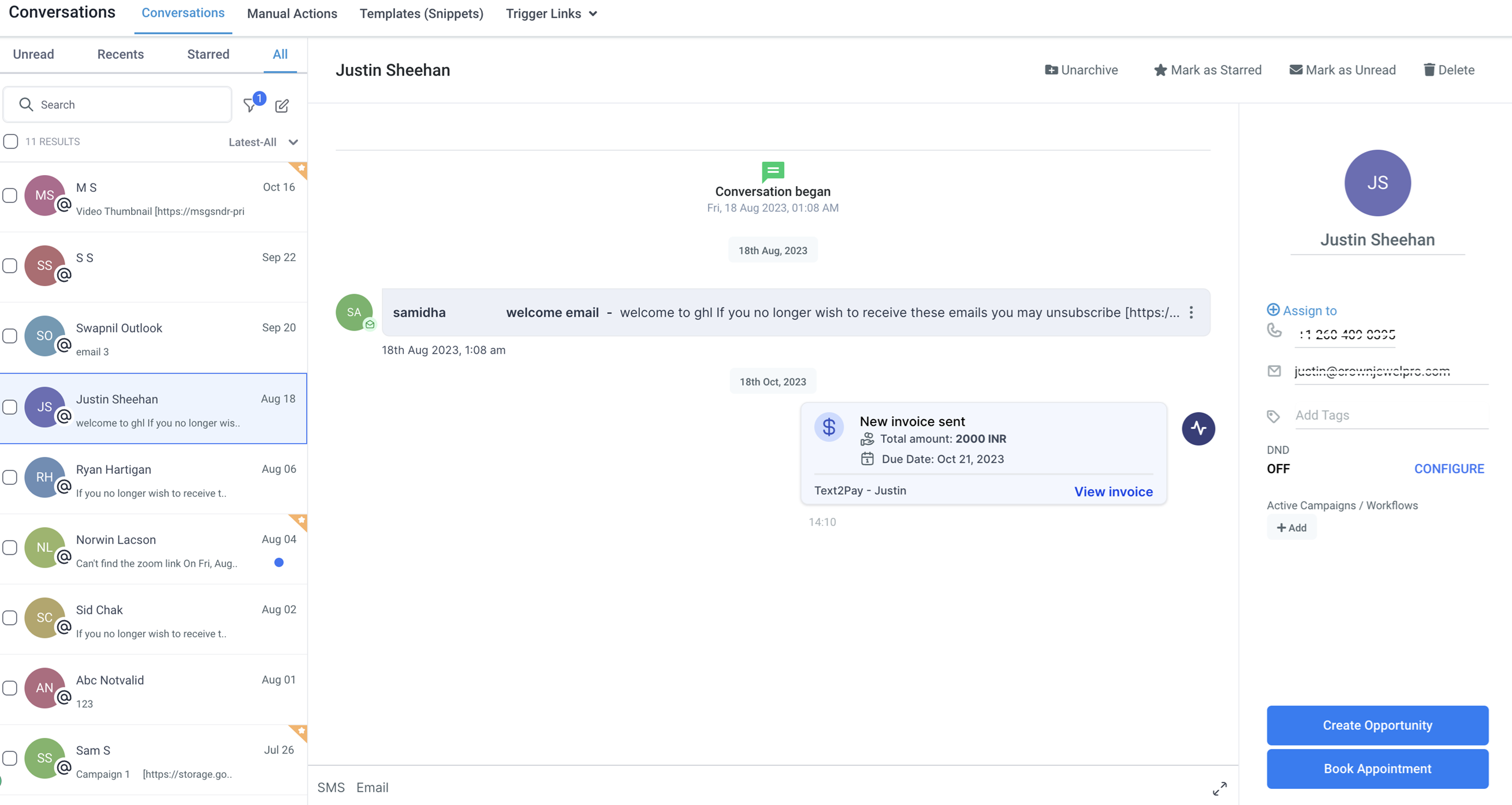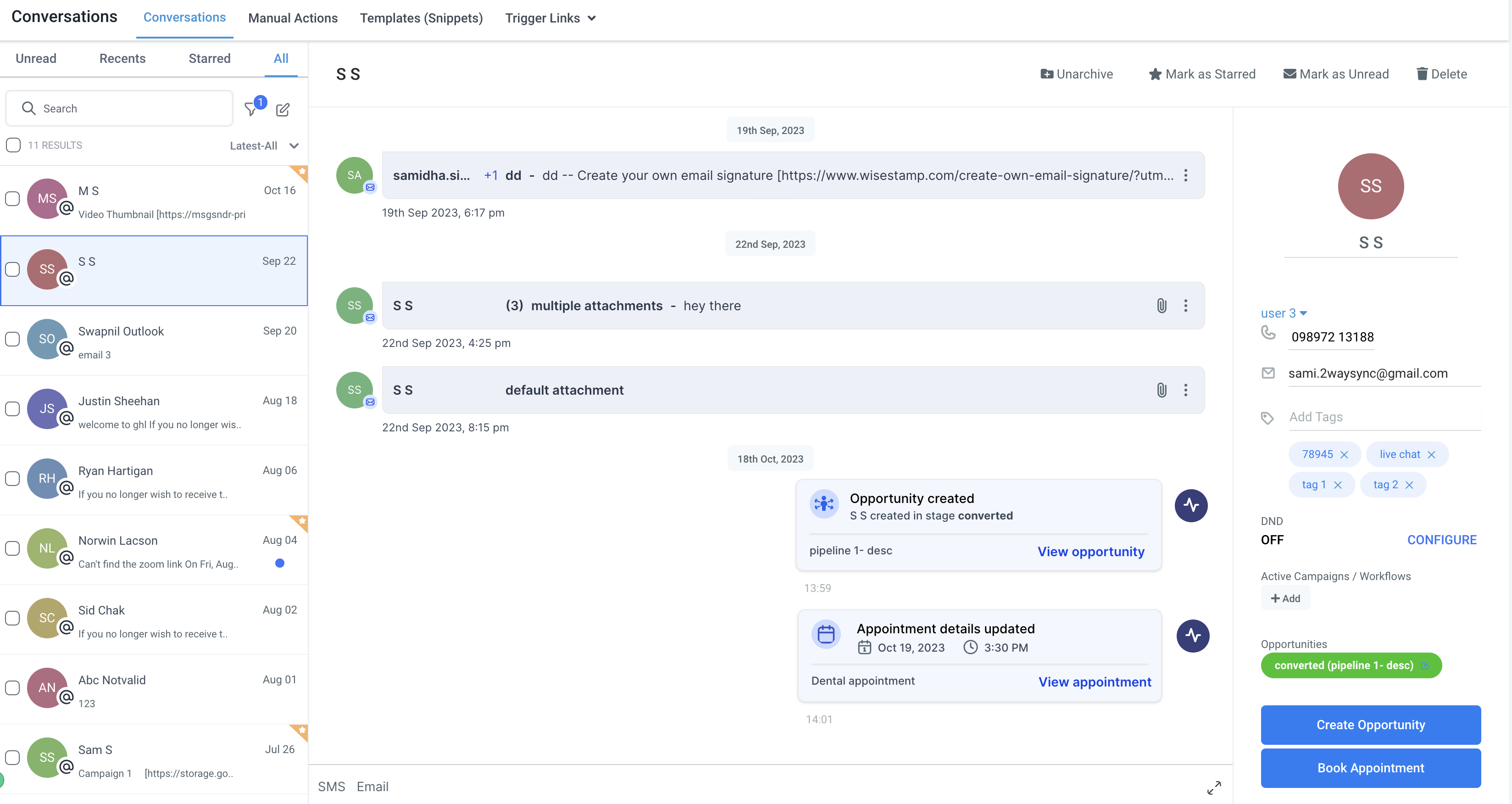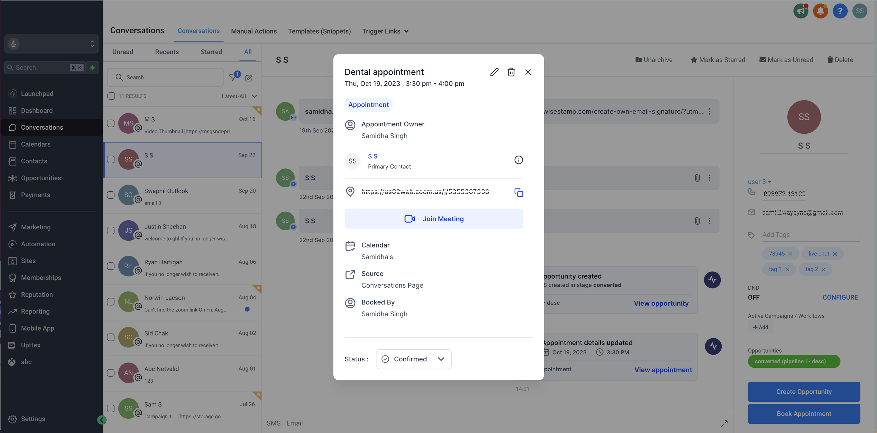 Anytime an appointment is created, rescheduled, or even canceled, you'll find an activity card in the conversation panel. This feature is designed to keep you perpetually updated without the need to juggle multiple screens. By clicking 'View Appointment' within the card, you can seamlessly edit the appointment details, all while staying rooted in the conversation panel.