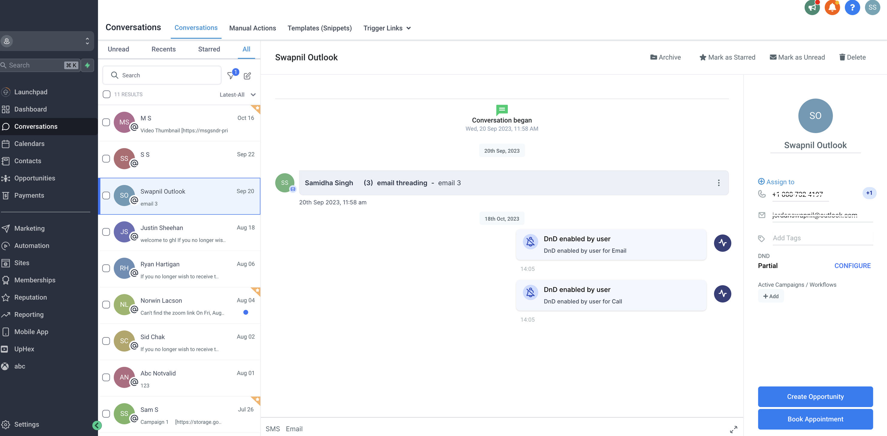 Activity cards notify you the moment a contact is marked as "Do Not Disturb" or is removed from the DnD list. These cards provide clarity and keep you informed about the current contact preference.