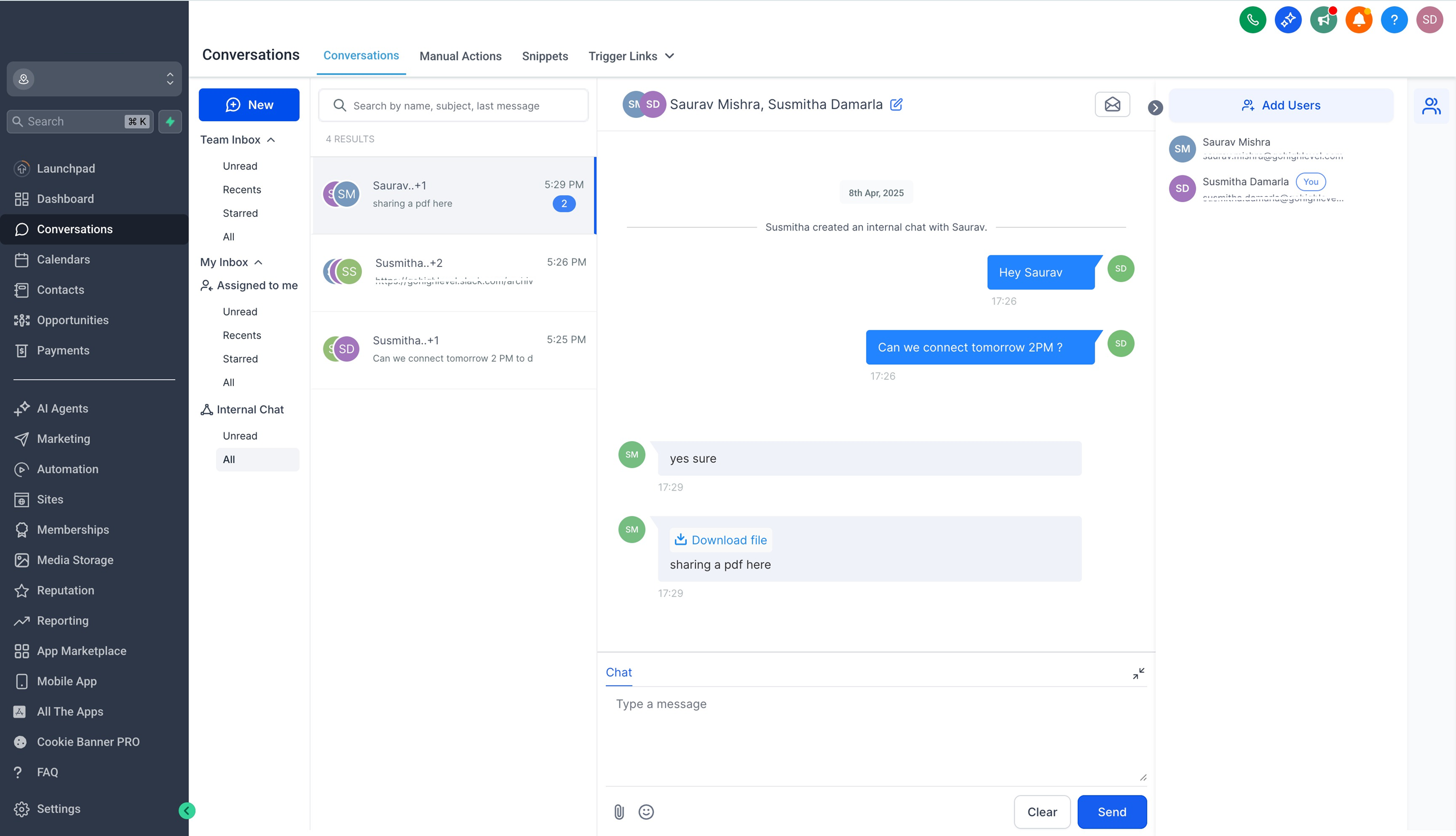 All Communication in One Place: No need to use external apps like Slack or email for internal discussions everything stays within the CRM, keeping conversations organized and accessible.