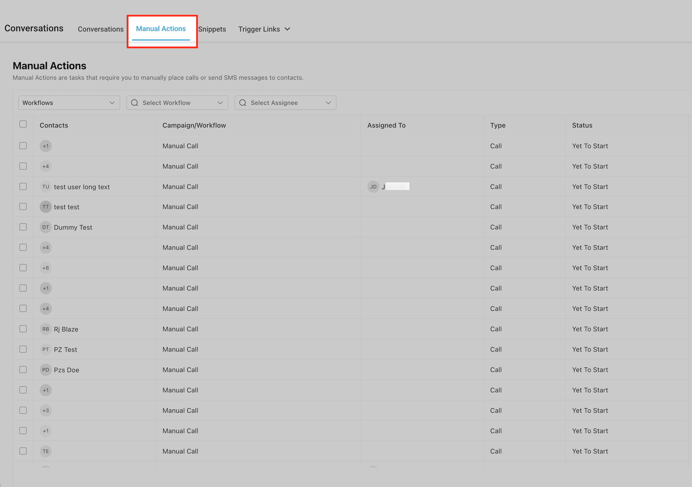 The Manual Actions page is where users complete call or SMS tasks generated by workflows, campaigns, or power-dialer queues. The design refresh introduces an updated layout that loads faster, surfaces key task details at a glance, and remembers your filters—making collaboration as simple as sharing a link.