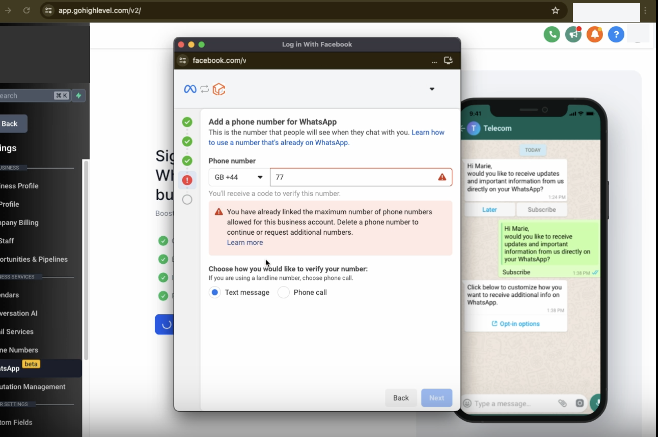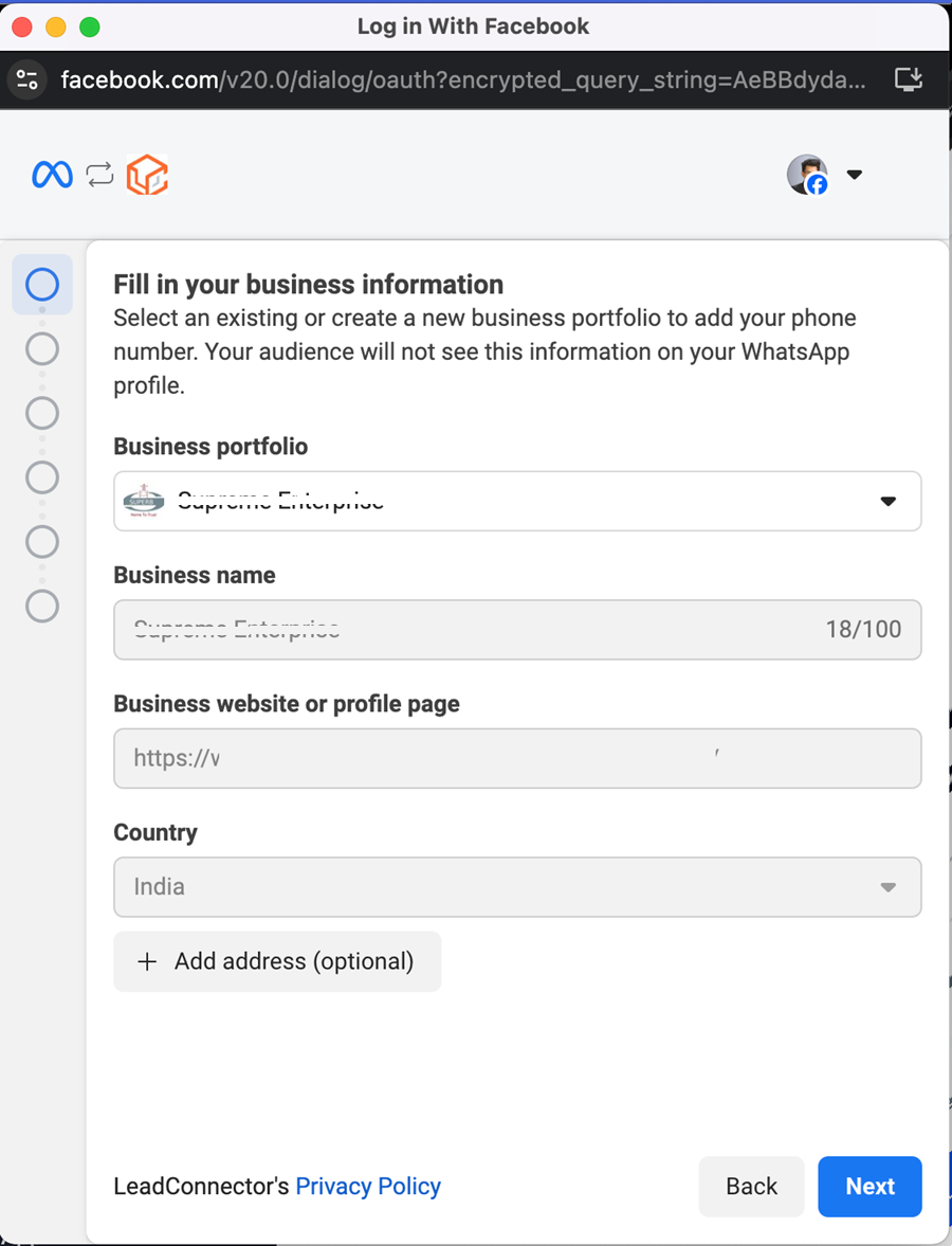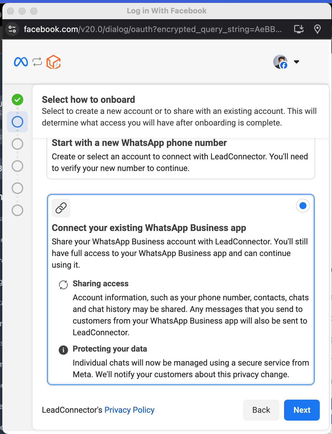 • Share your existing WhatsApp Business account with LeadConnector.