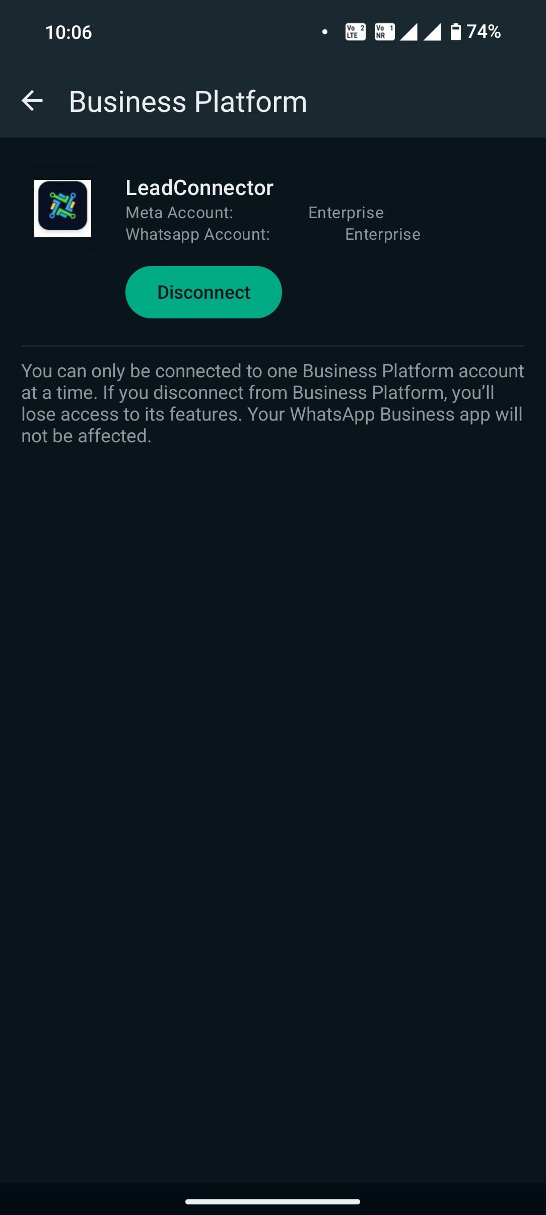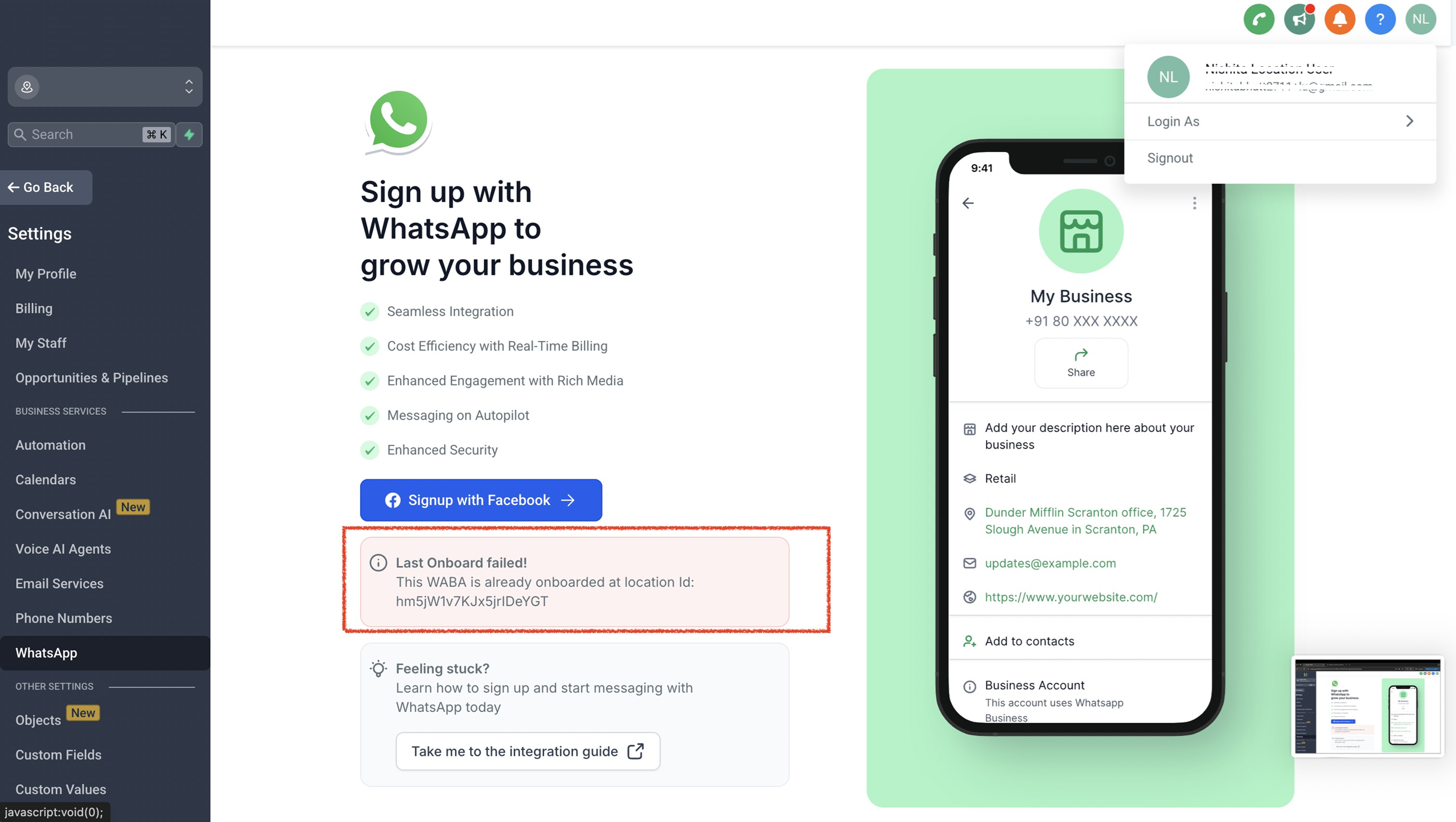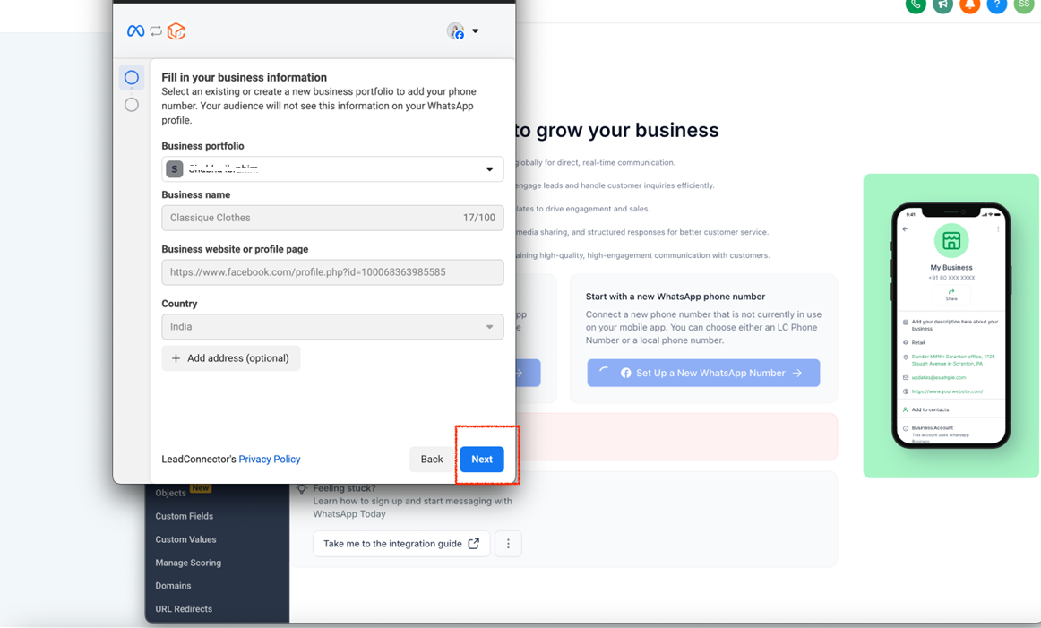 • Your WhatsApp Business App is now successfully integrated with LeadConnector!