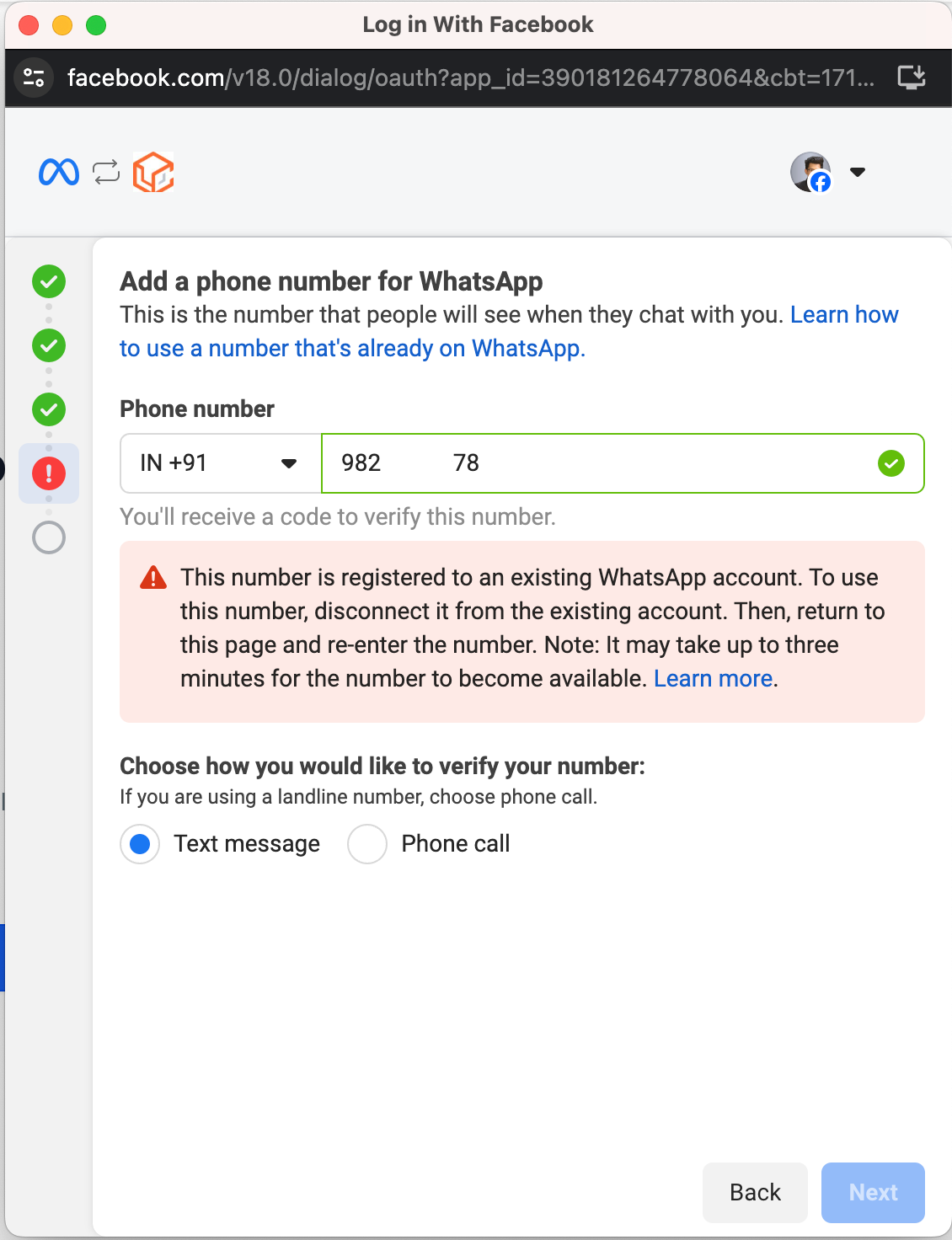 If your WhatsApp number is linked to another provider, you need to create a new WABA account and migrate your number to the new WABA account