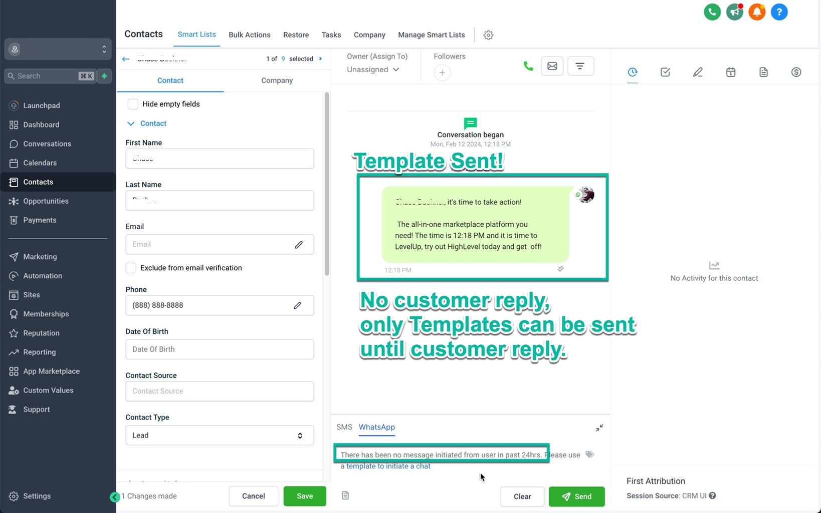 • Import contacts and up to six months of chat history from the WhatsApp Business App to LeadConnector.