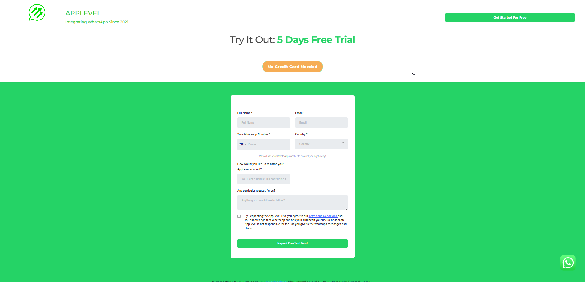 Create your AppLevel account, which is required to enable WhatsApp messaging inside Intellia.