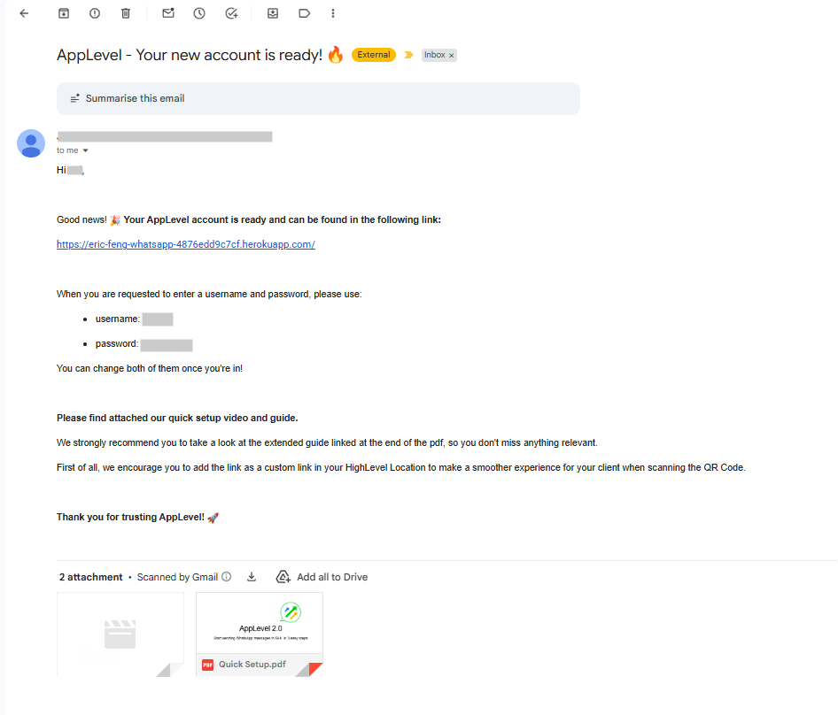 Complete this step before moving on, as AppLevel is required for all WhatsApp connections.