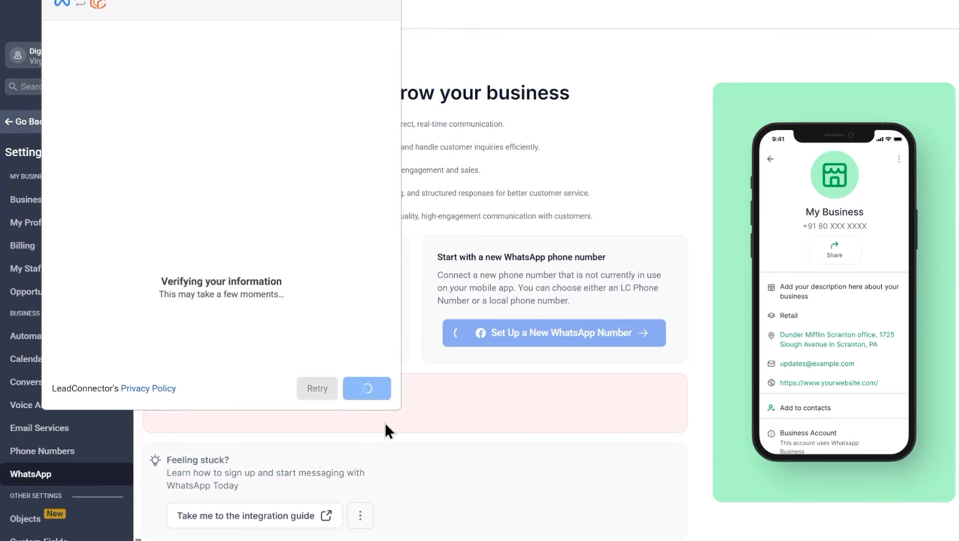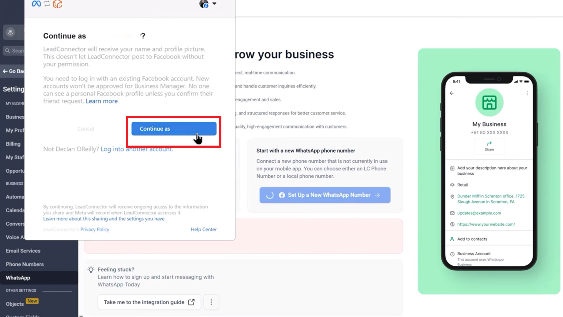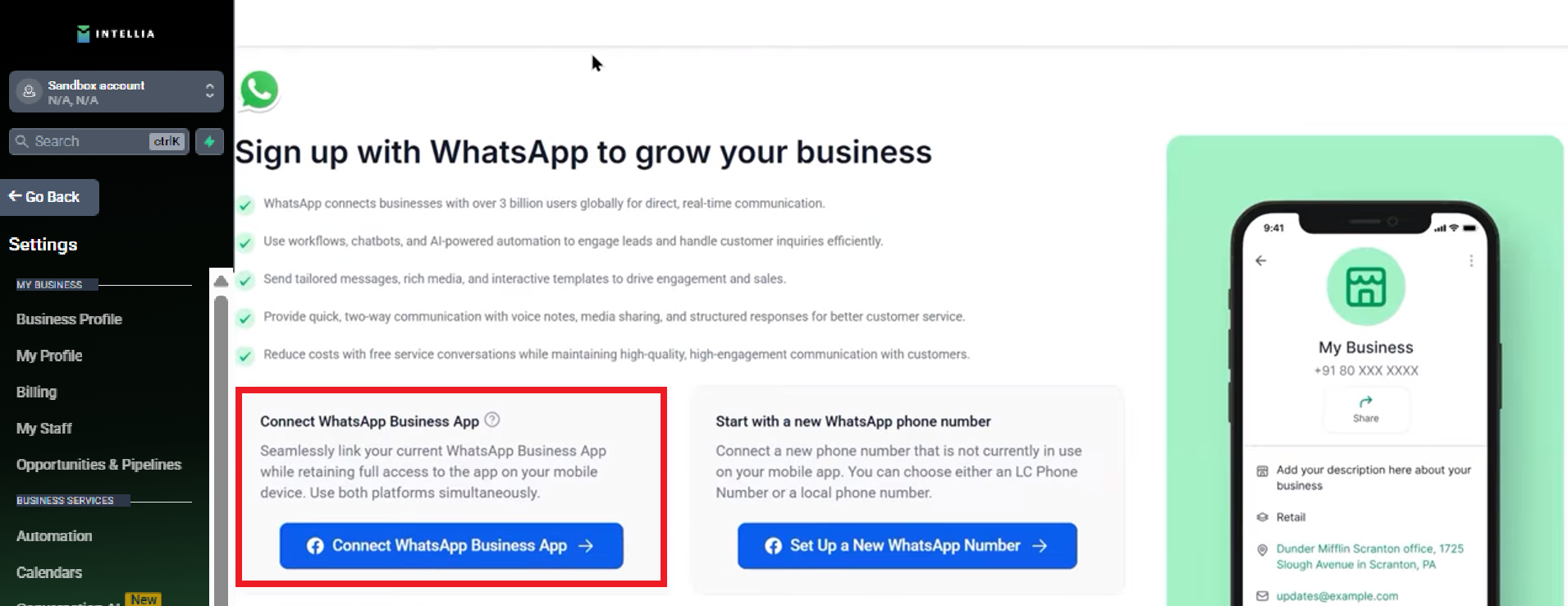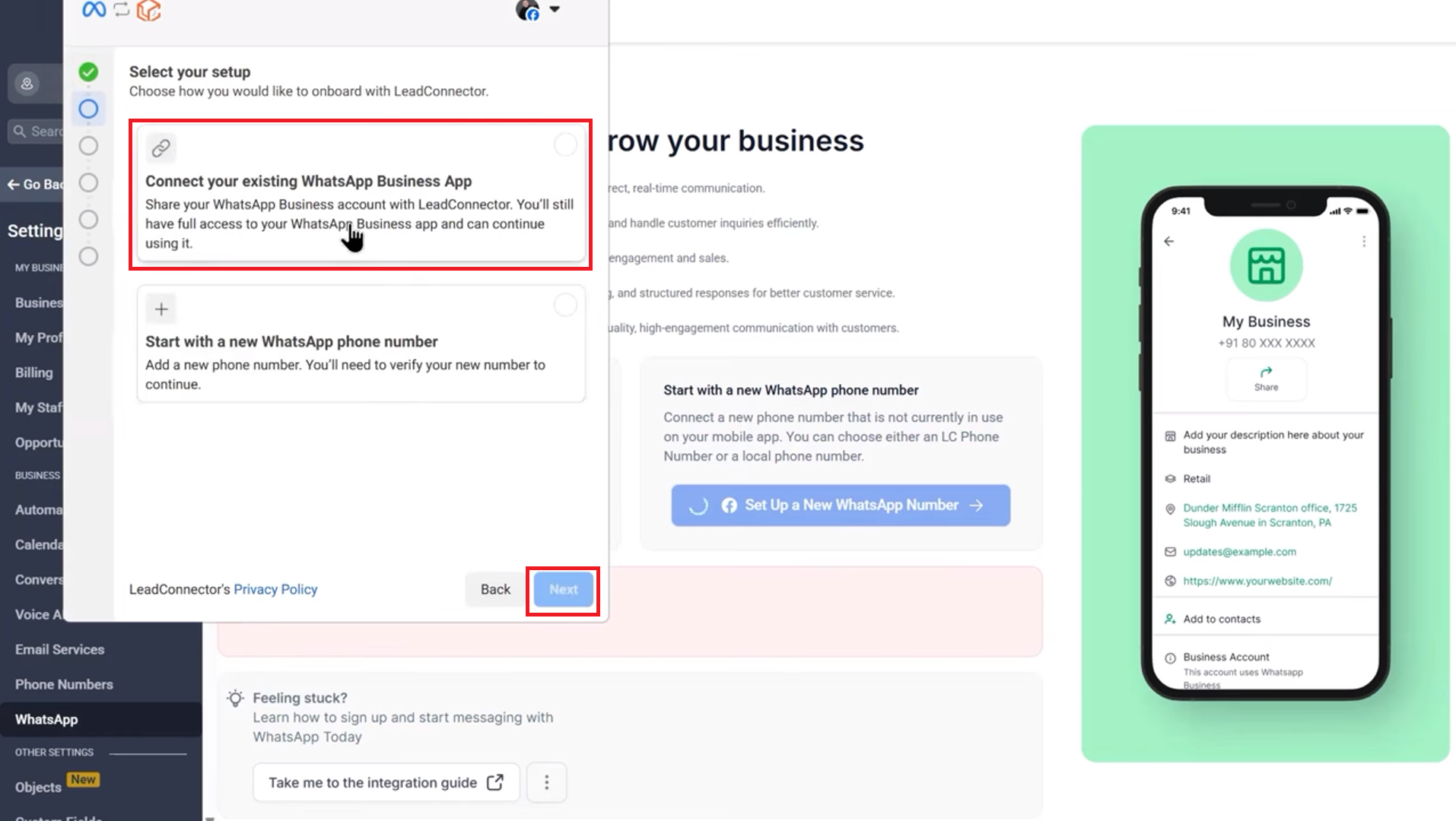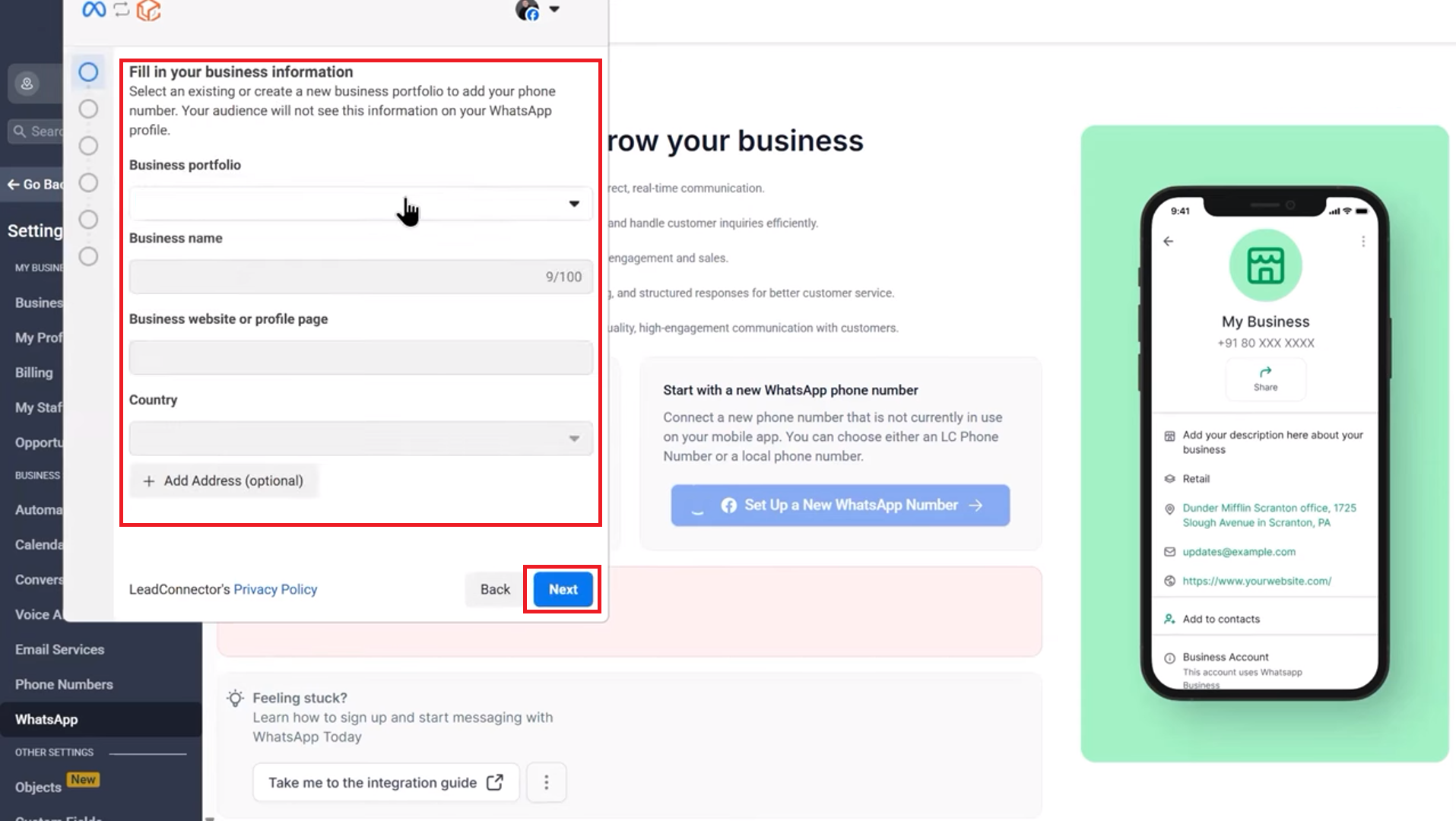 Add a phone number for WhatsApp. Choose between Get a free WhatsApp number, or