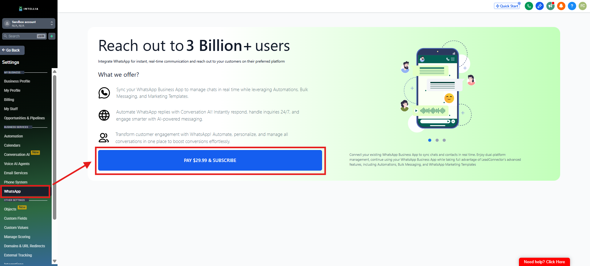 This is a monthly subscription that enables WhatsApp messaging for your account.