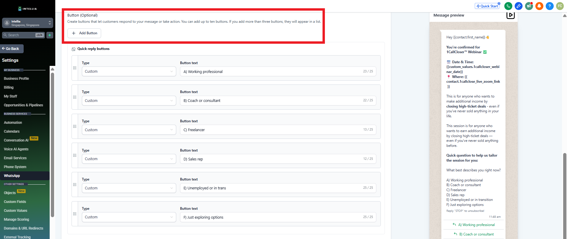 So instead of manually typing these every time, the system inserts the correct values automatically when the message is sent.
