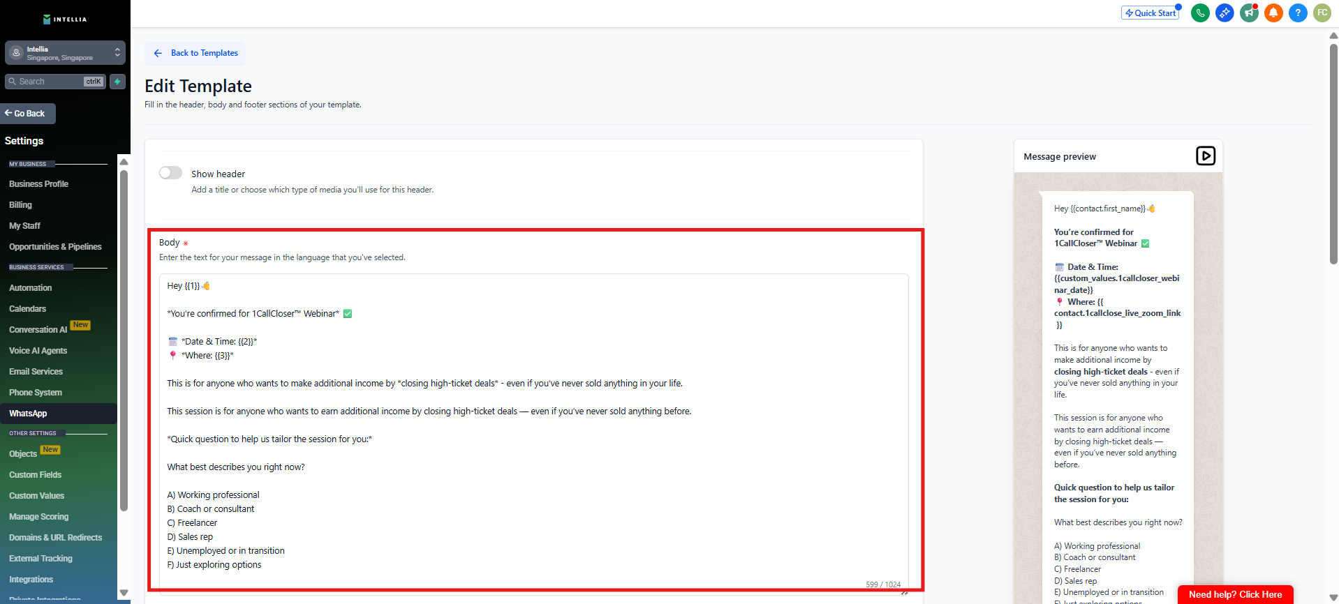 Template messages are used to start or restart a conversation after 24 hours — and they cost money.