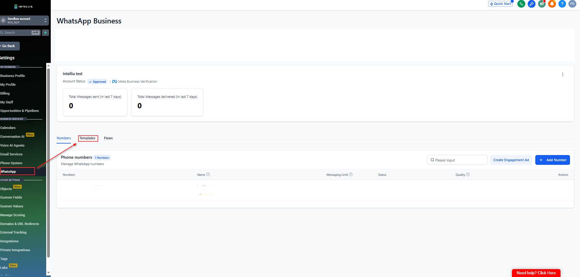 This will take you to the WhatsApp Template management screen