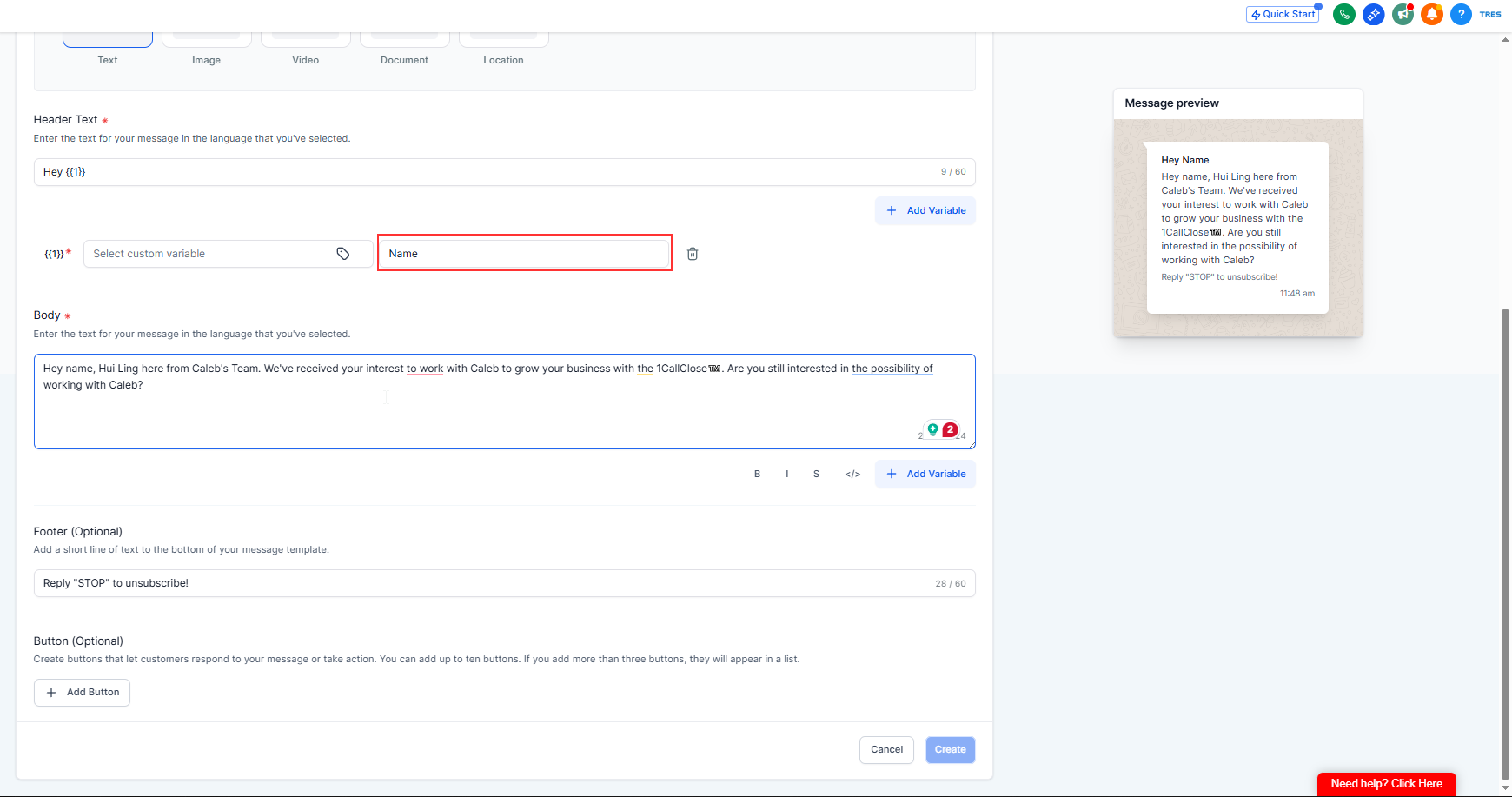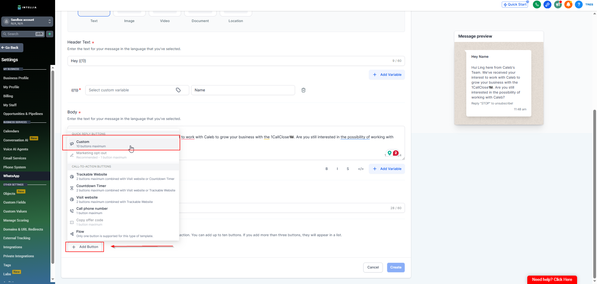 Set up the WhatsApp message templates your 1CallClose.Agent will use — especially the Initial template which will be the first message every lead receives after they opt in.