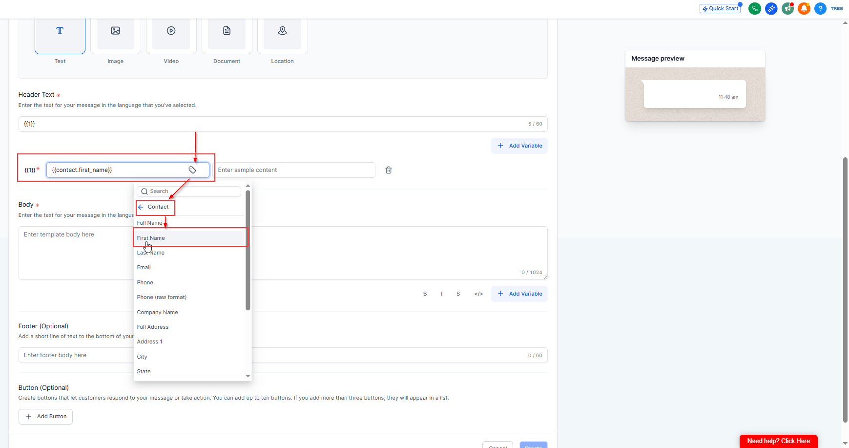 The real value will come from the mapped field (First Name) when the message is sent.