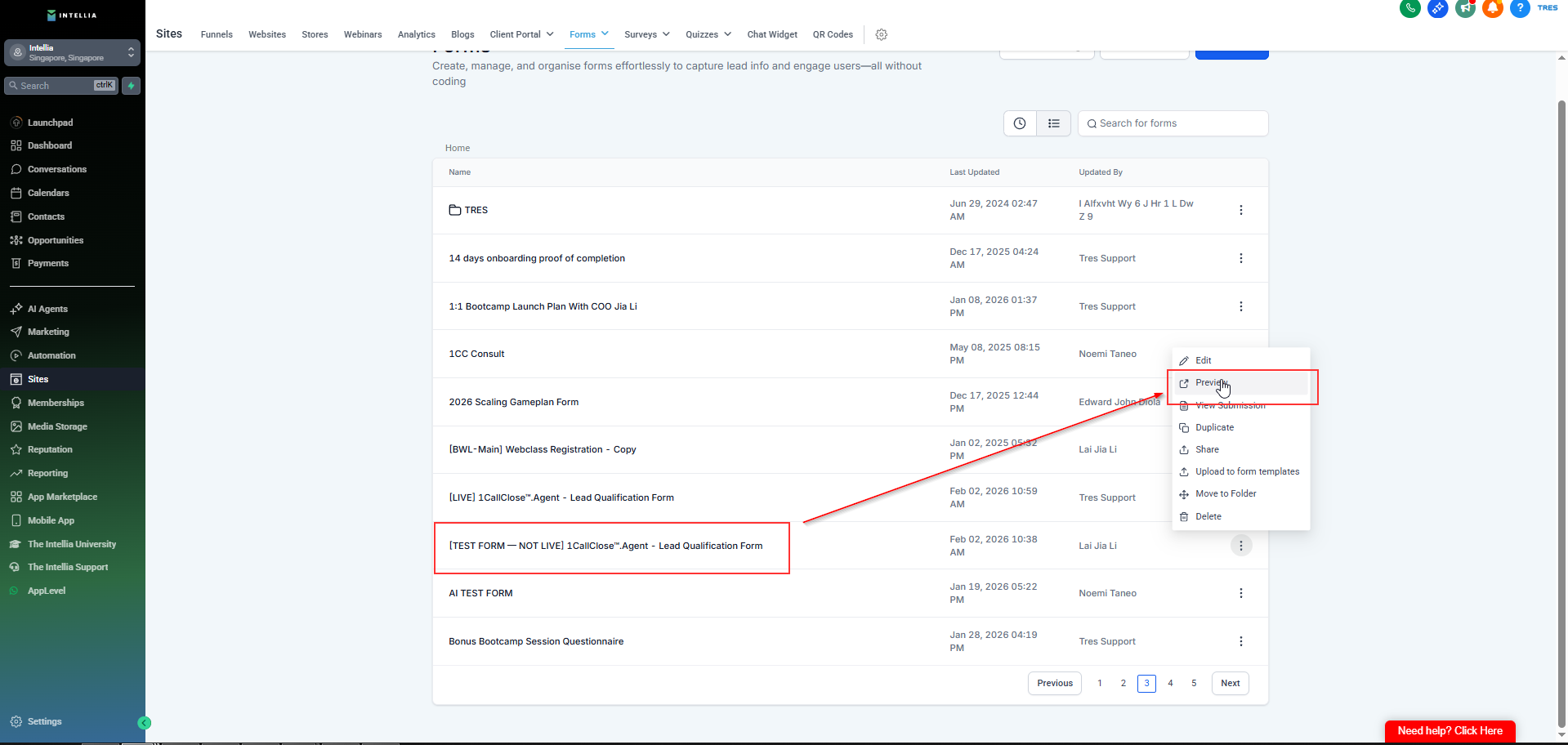 Always test against the TEST form first. This ensures your AI messages, booking links, variables, and logic work end-to-end before using your LIVE opt-in form.