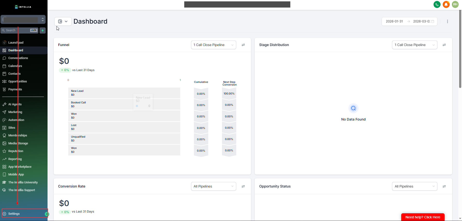 On the left sidebar, scroll down and click Settings (bottom-left).