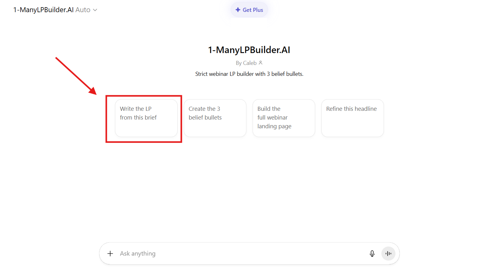 Step 2 . Click the “Write the LP from this Brief”