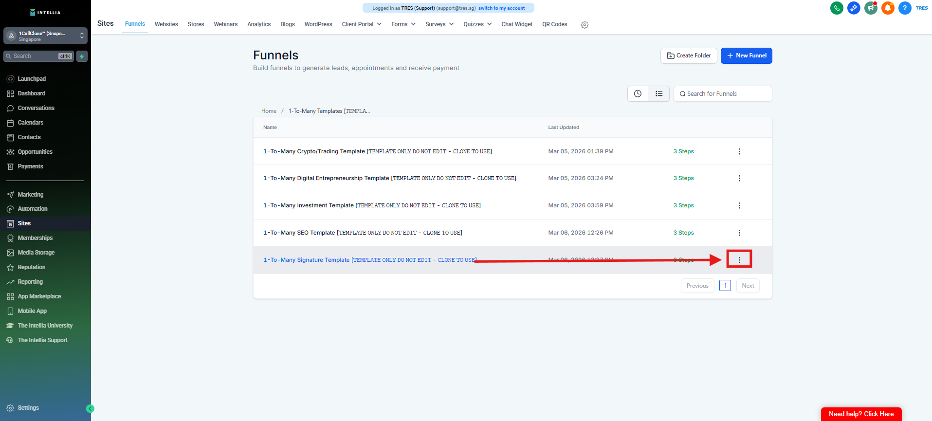 Go to the page list → find the Signature Template → click the ⋮ (three dots) next to it → click Clone.