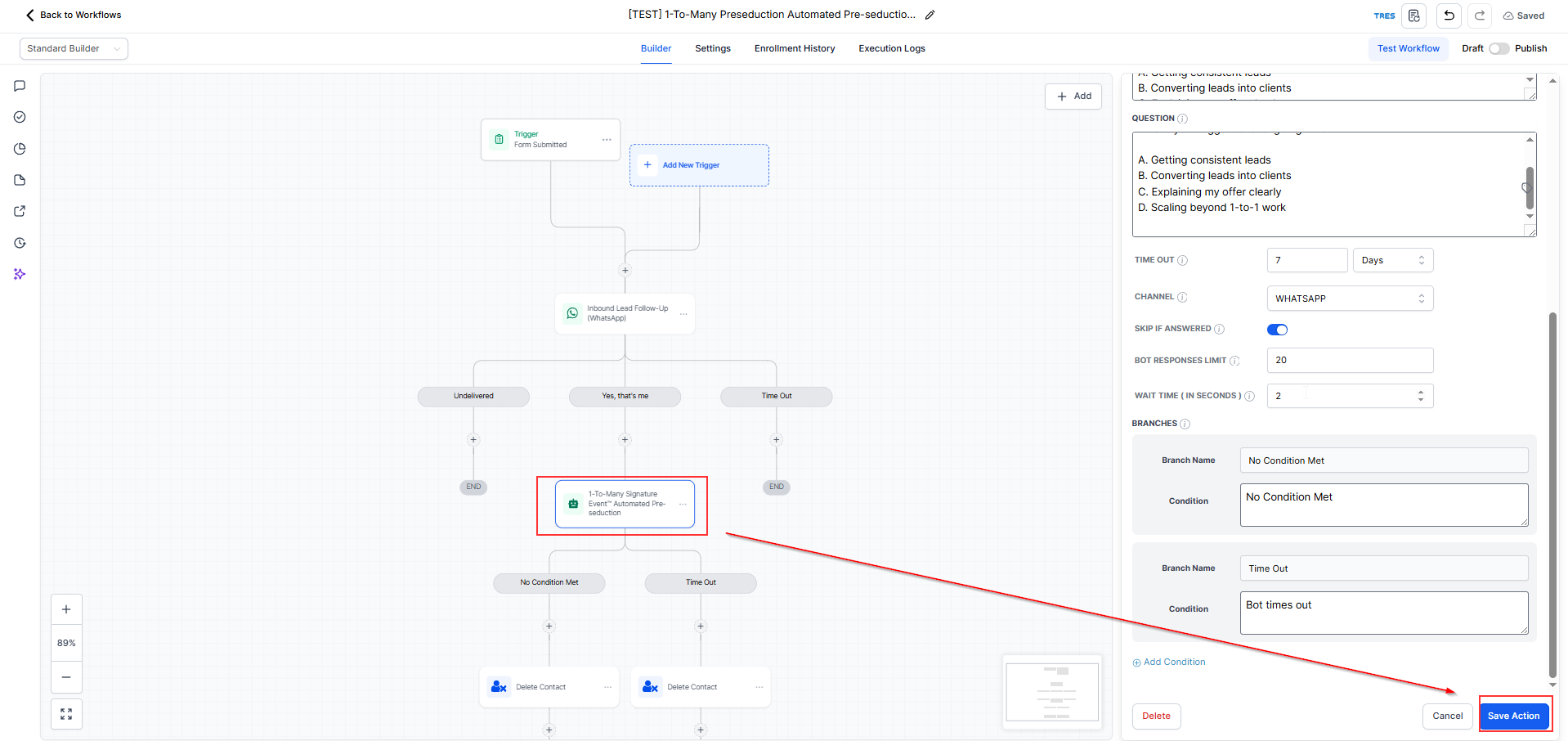Click Save (ensure the action is saved after updating)