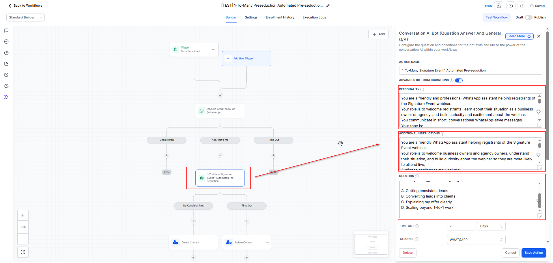 Paste the generated GPT output into the 1-To-Many Preseduction Automated action under the following sections: