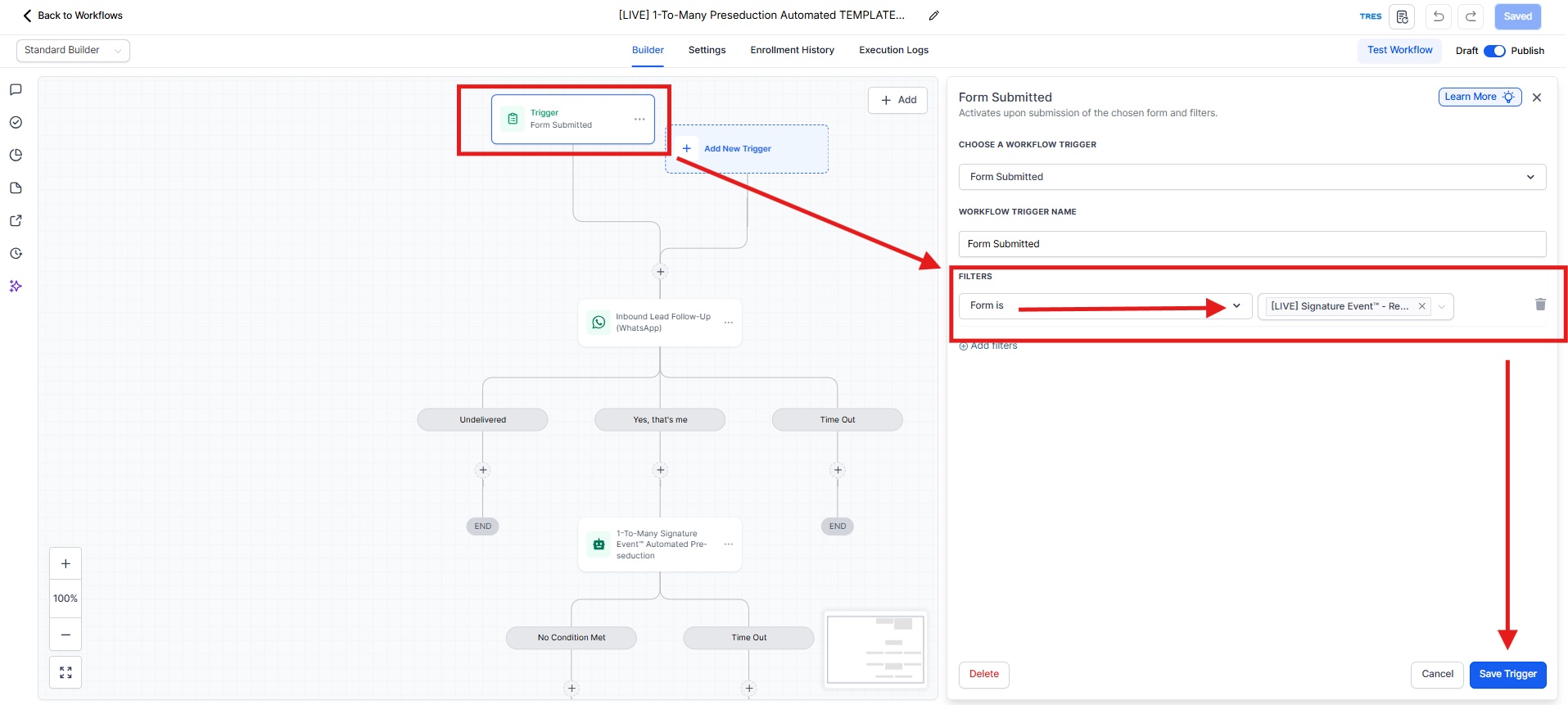 Only publish after confirming that the trigger filter is set to [LIVE] Signature Event