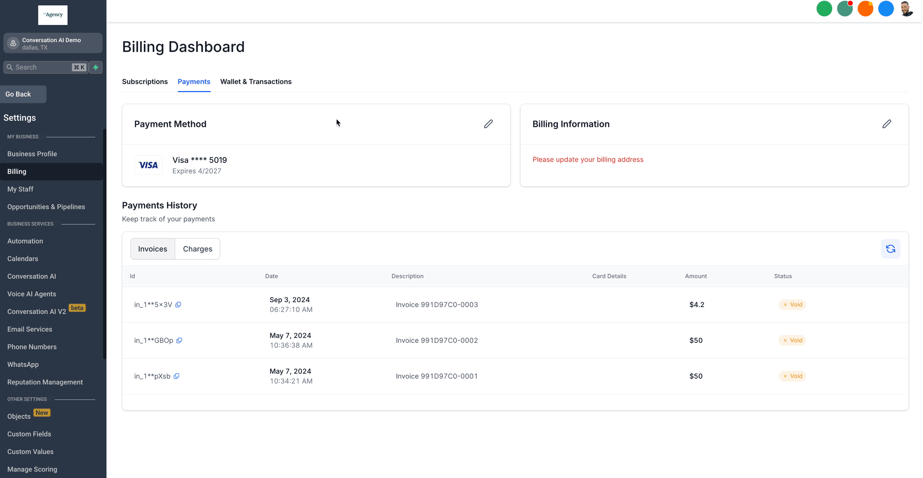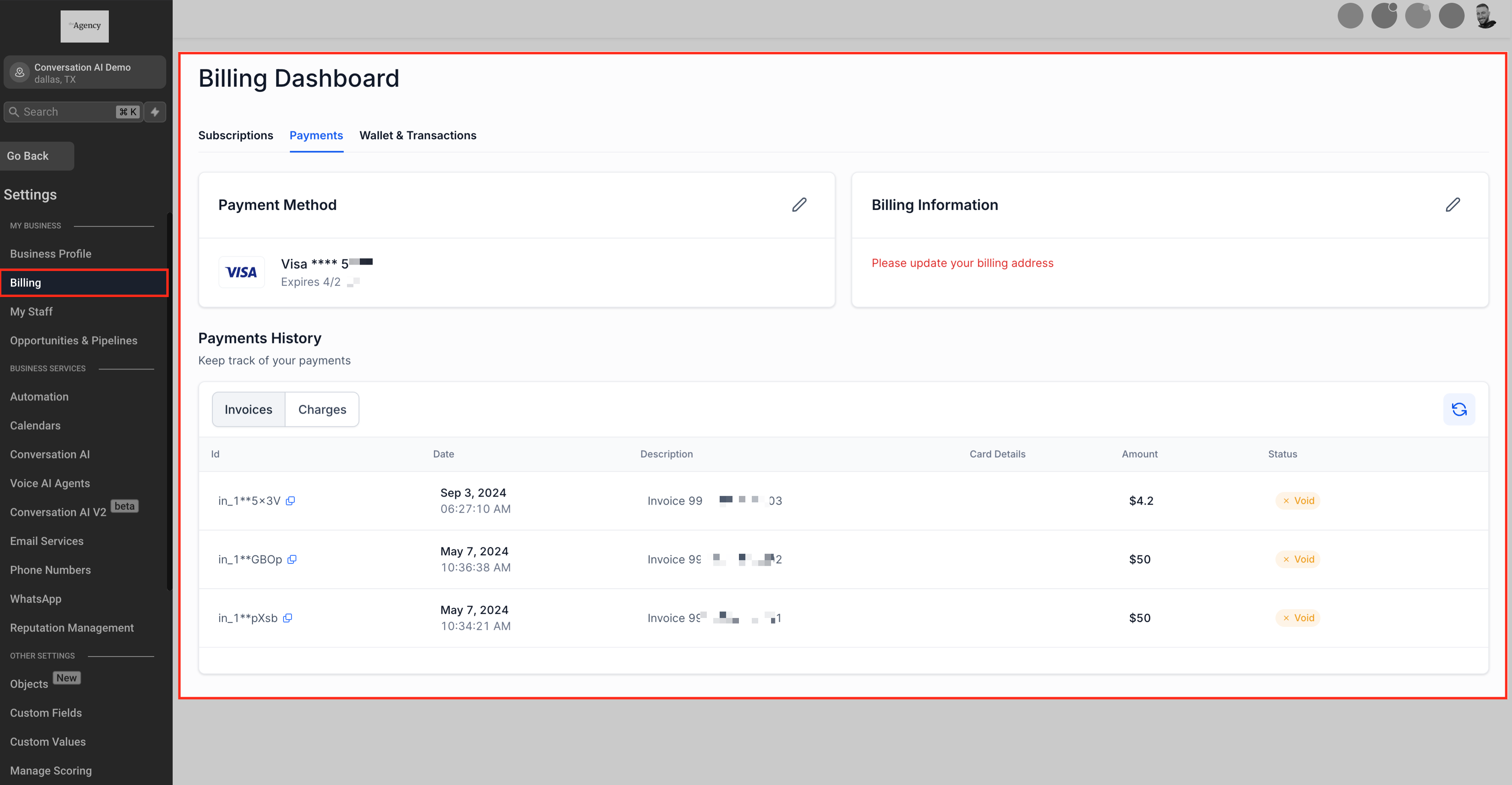 Maintaining accurate billing information is crucial for compliance and successful transactions. Within the Billing section, you can: