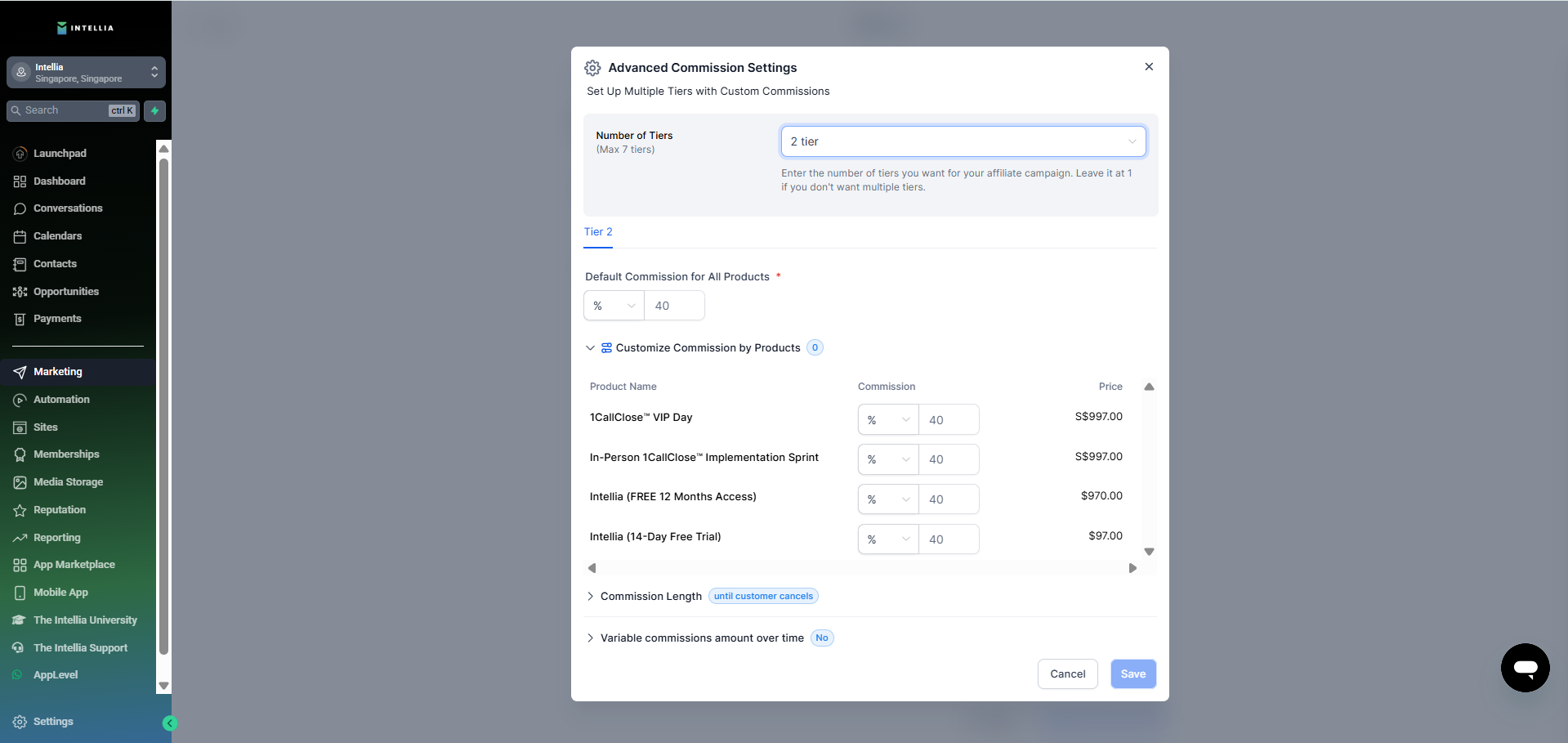 Access the Advanced Commissions settings to enable multi-tier commissions. You can support up to 7 tiers for more intricate commission structures.