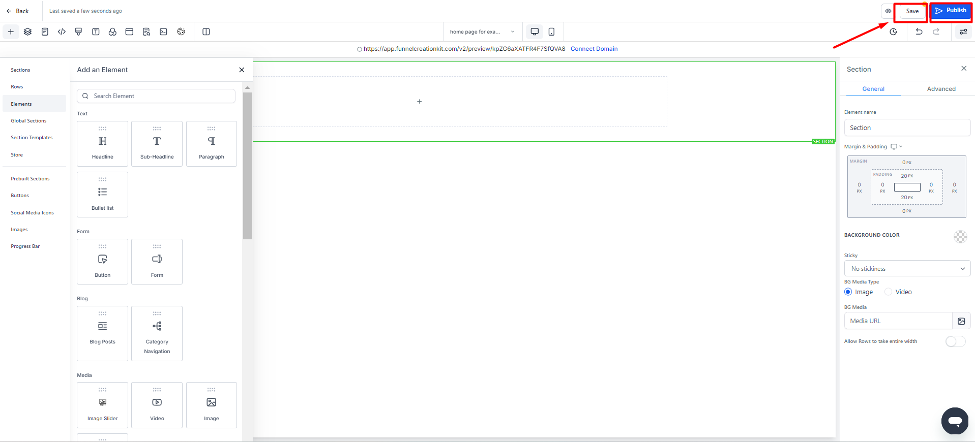 Step 6 : Once you are now inside the Website builder > click the Section > click the Full width then drag and drop > and you can now add the column and element .