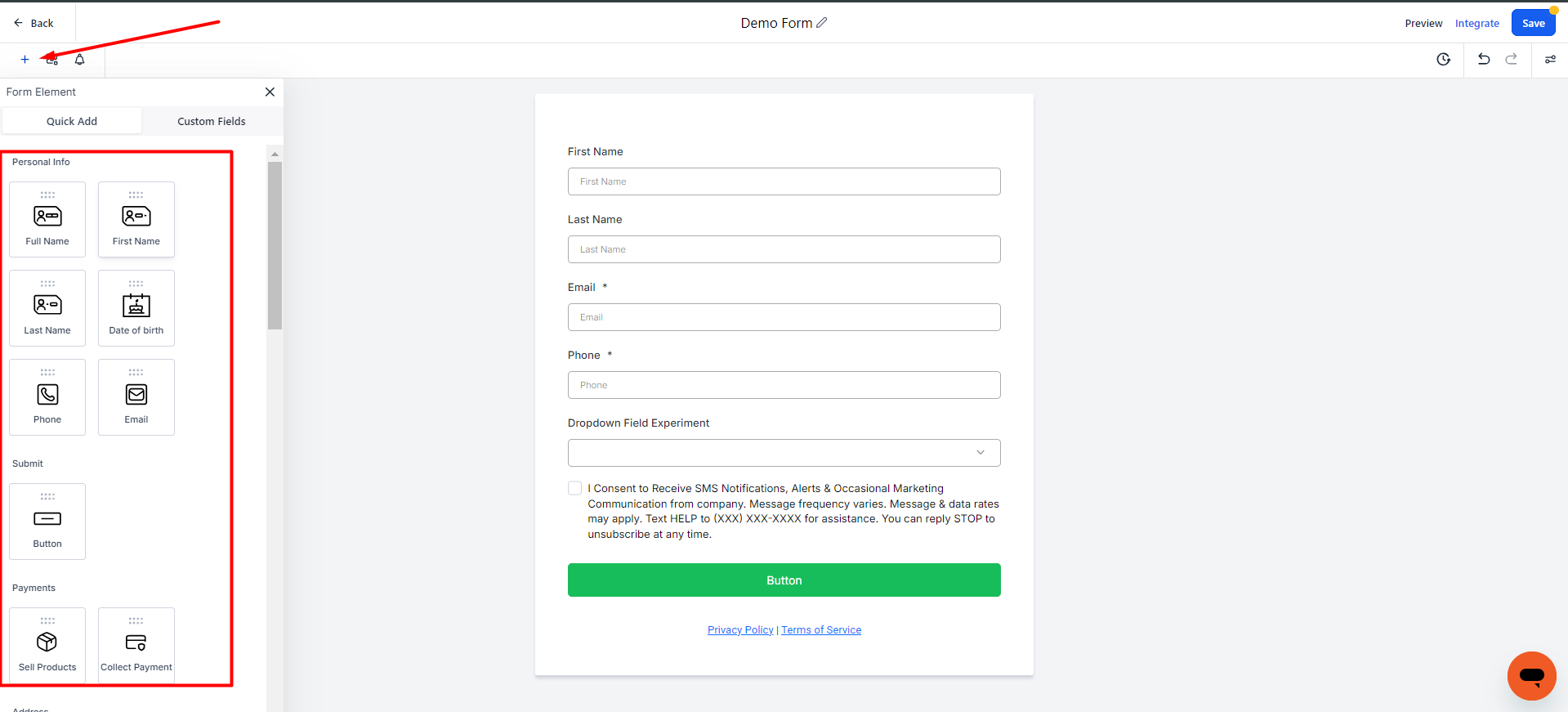 Step 6 : And if you want to customized or create your fields on the form, just click the Custom fields > click the + Add button > choose your texting field > then click Next button