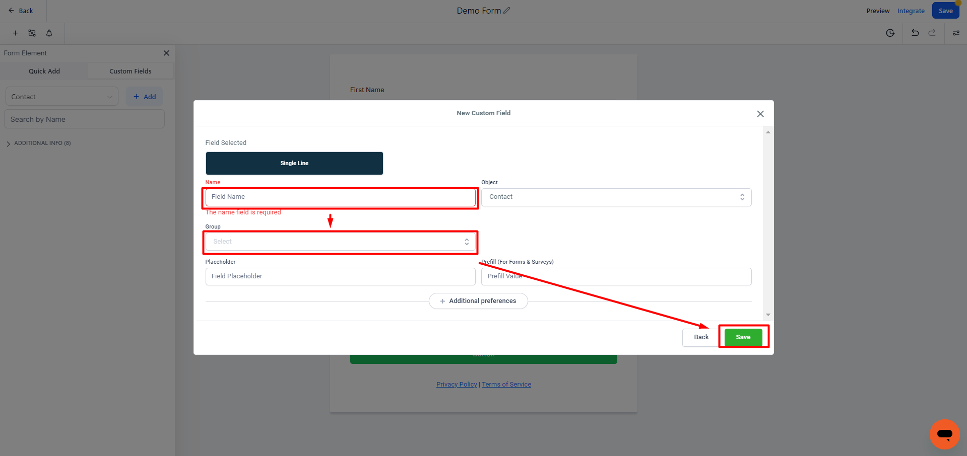 Step 7 : Enter your desired question name > then select the group where you want to store the information > finally, click the Save button.