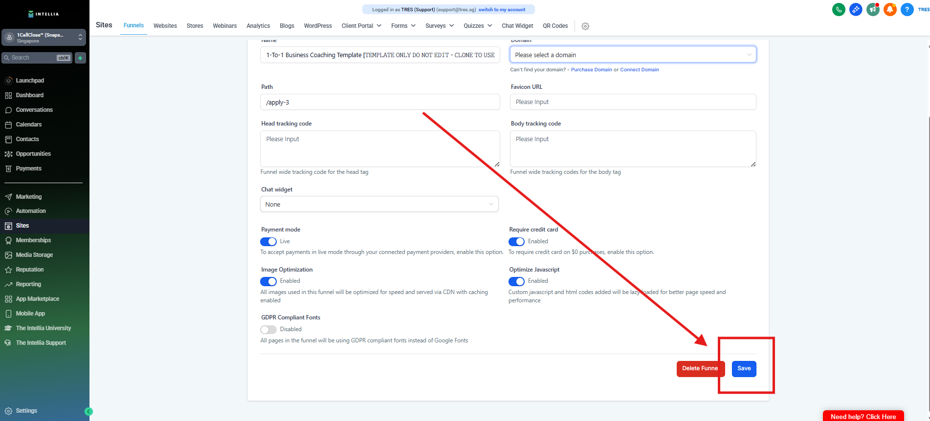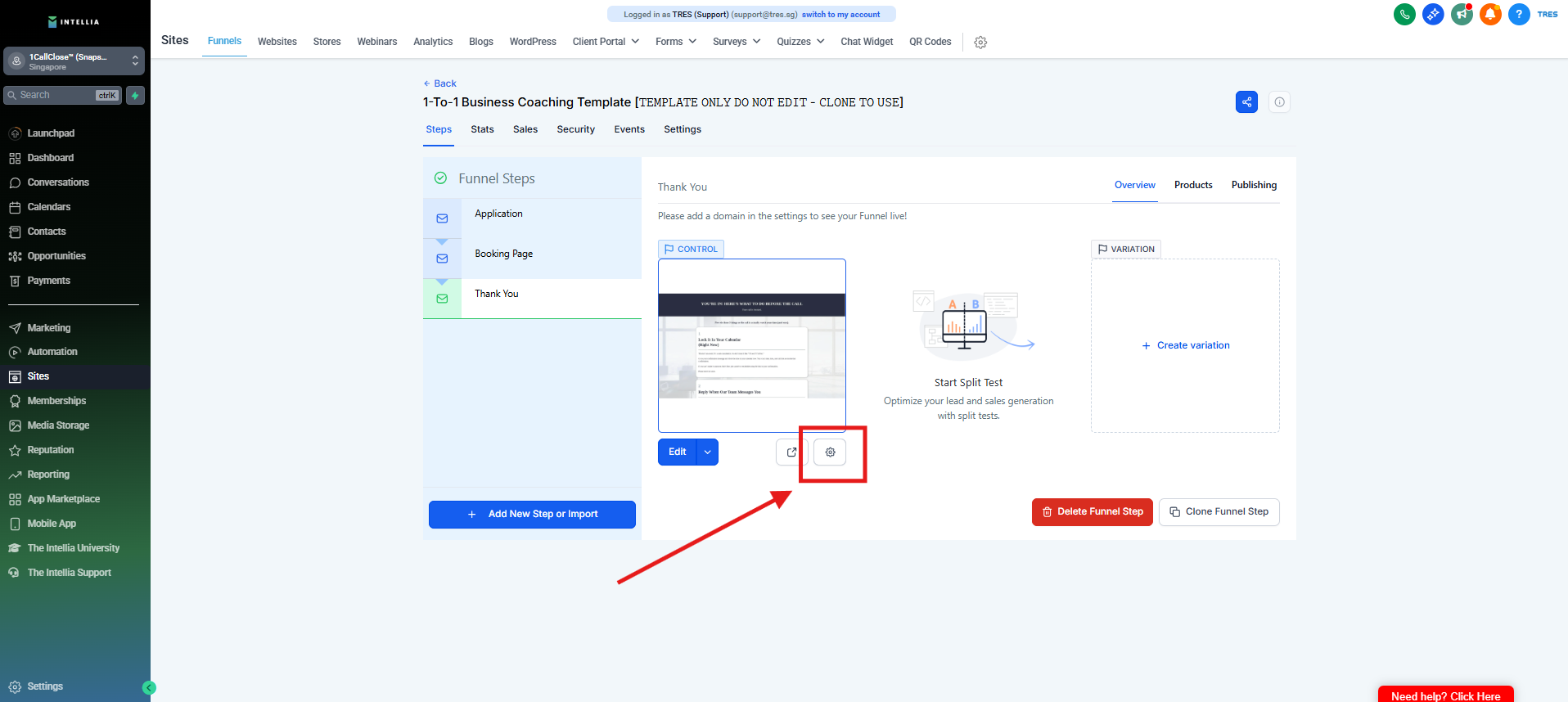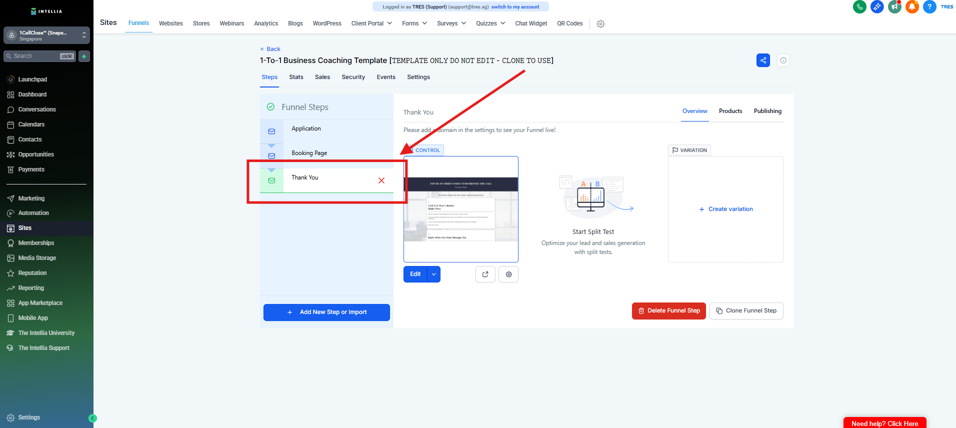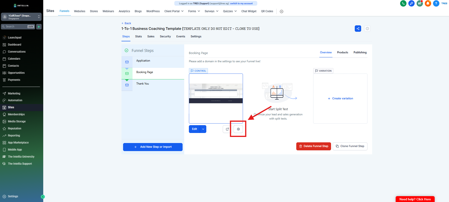 Step 1 : Navigate to your Sites >> then go to the funnel that you are working on >> Click to view the funnel