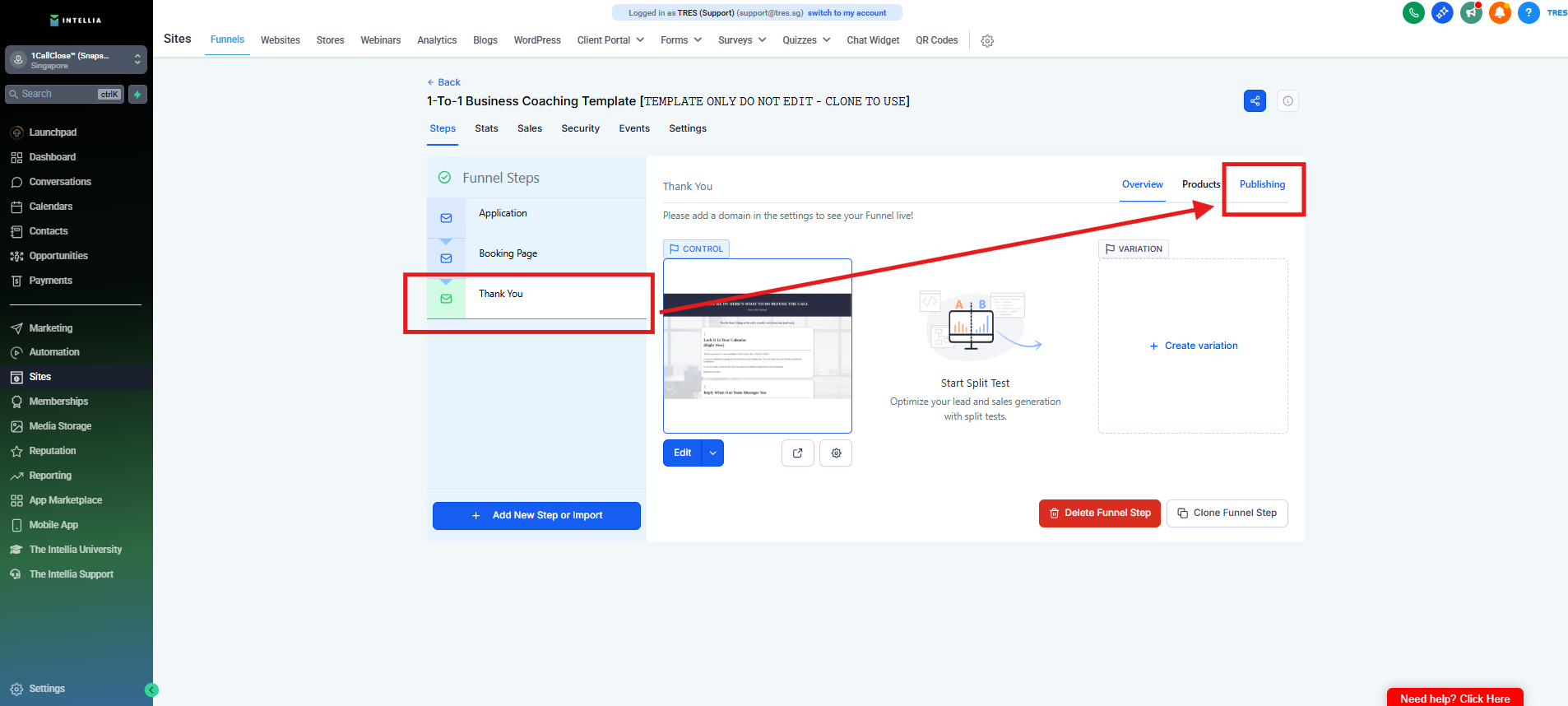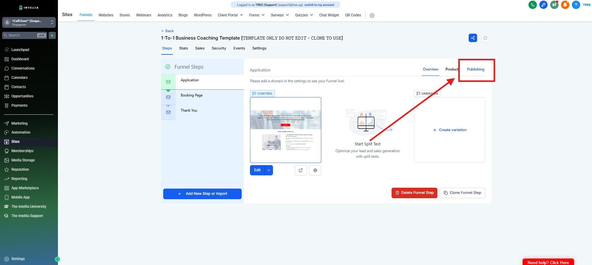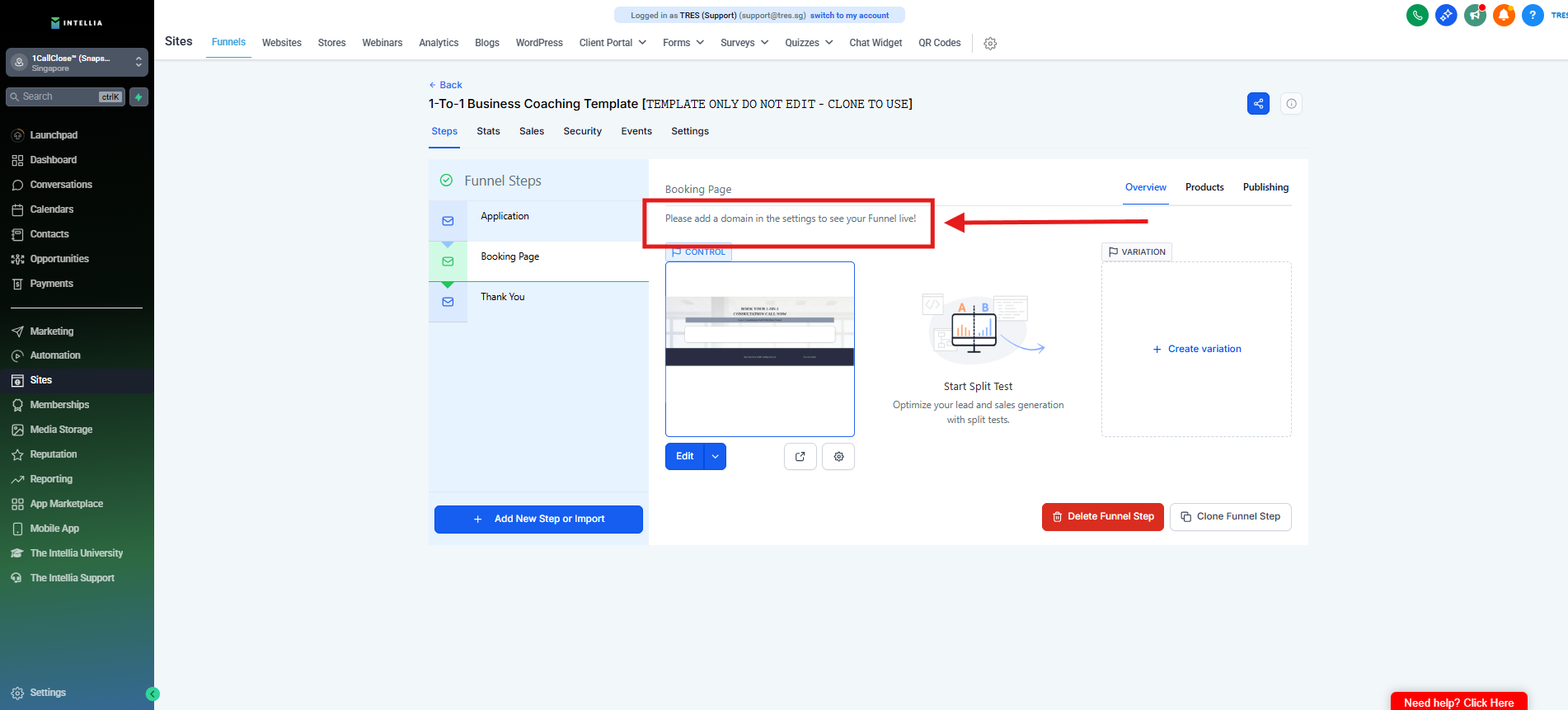 Step 1 : Navigate to your Sites >> then go to the funnel that you are working on >> Click to view the funnel