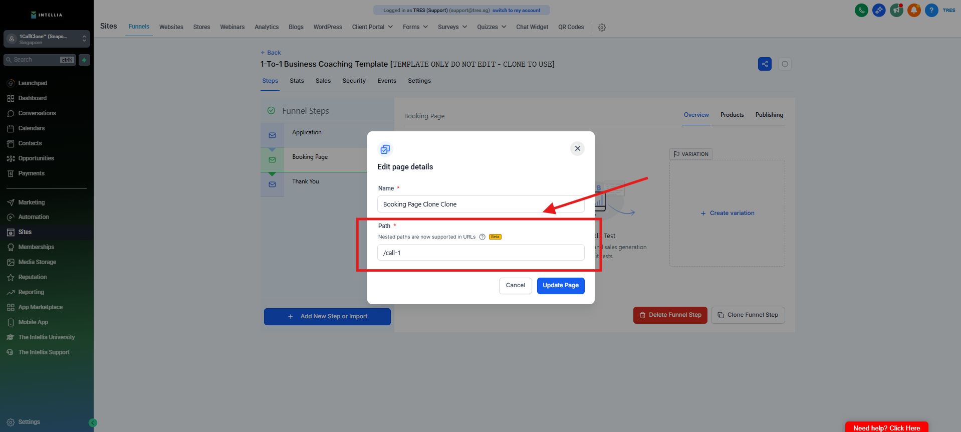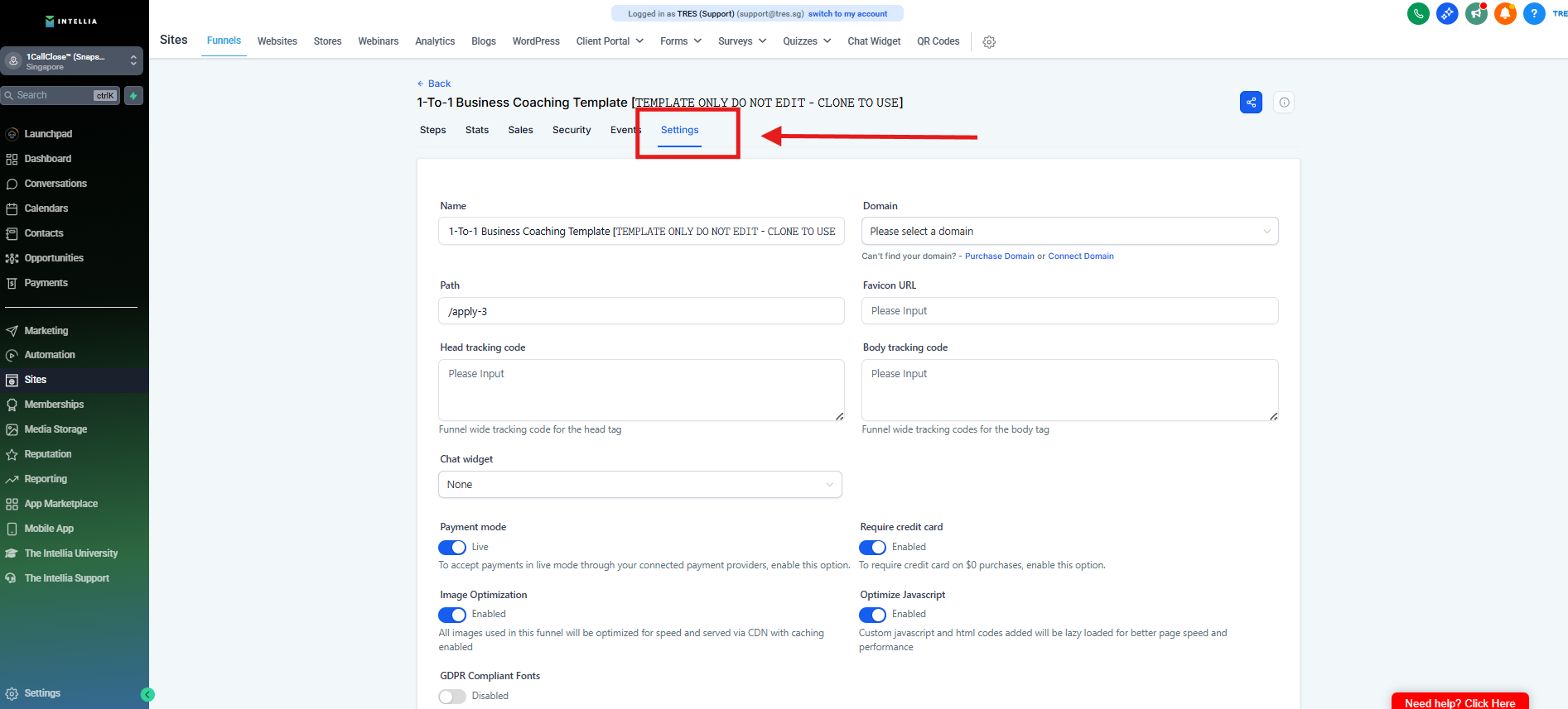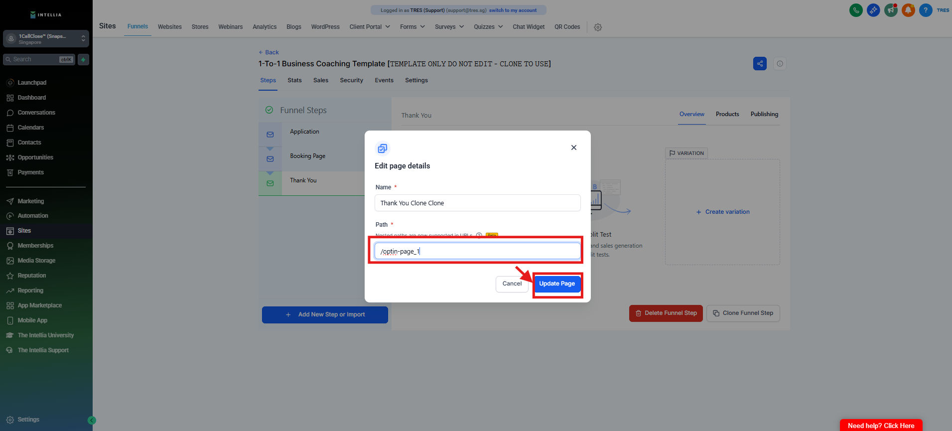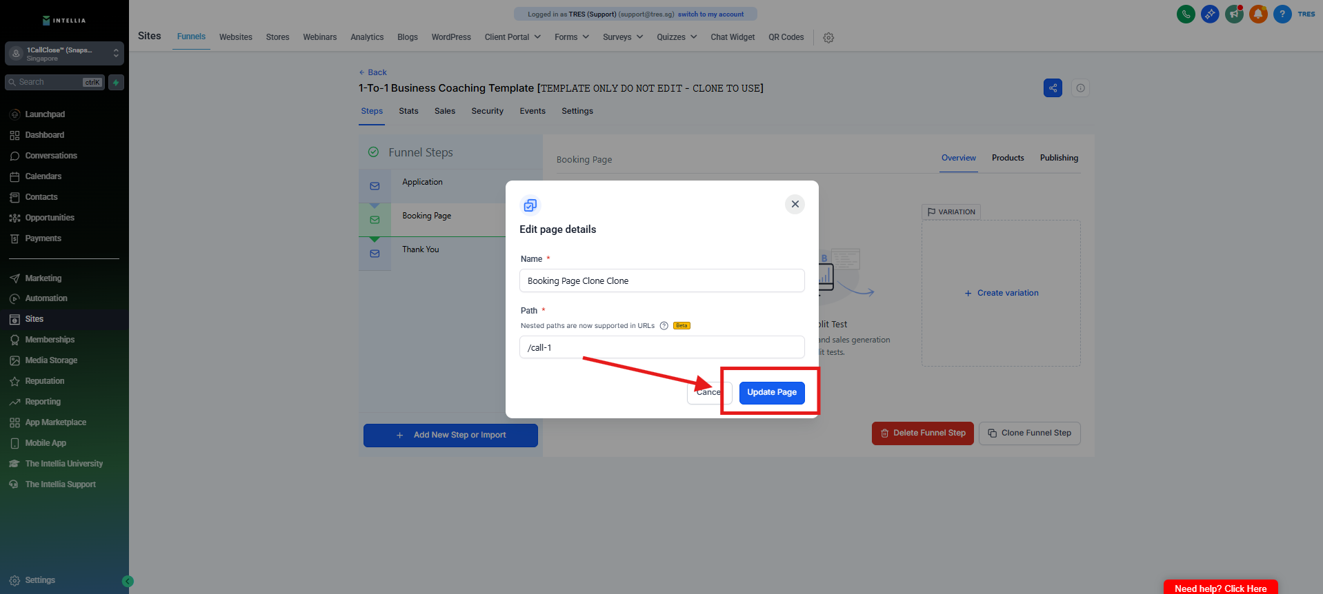 Step 1 : Navigate to your Sites >> then go to the funnel that you are working on >> Click to view the funnel
