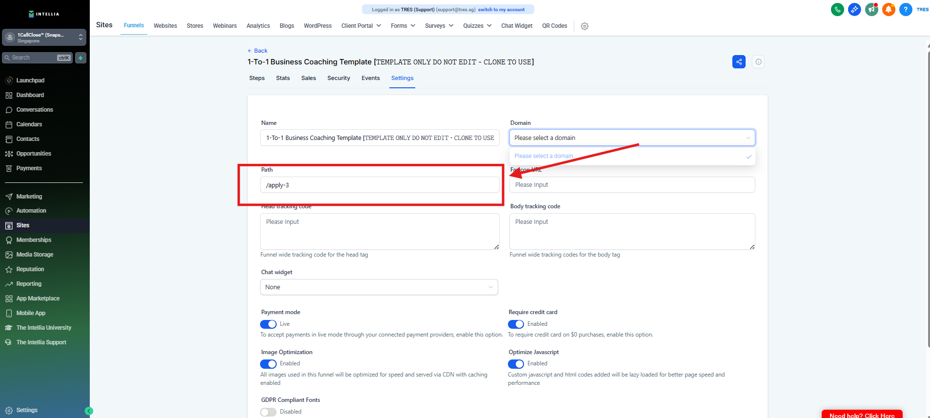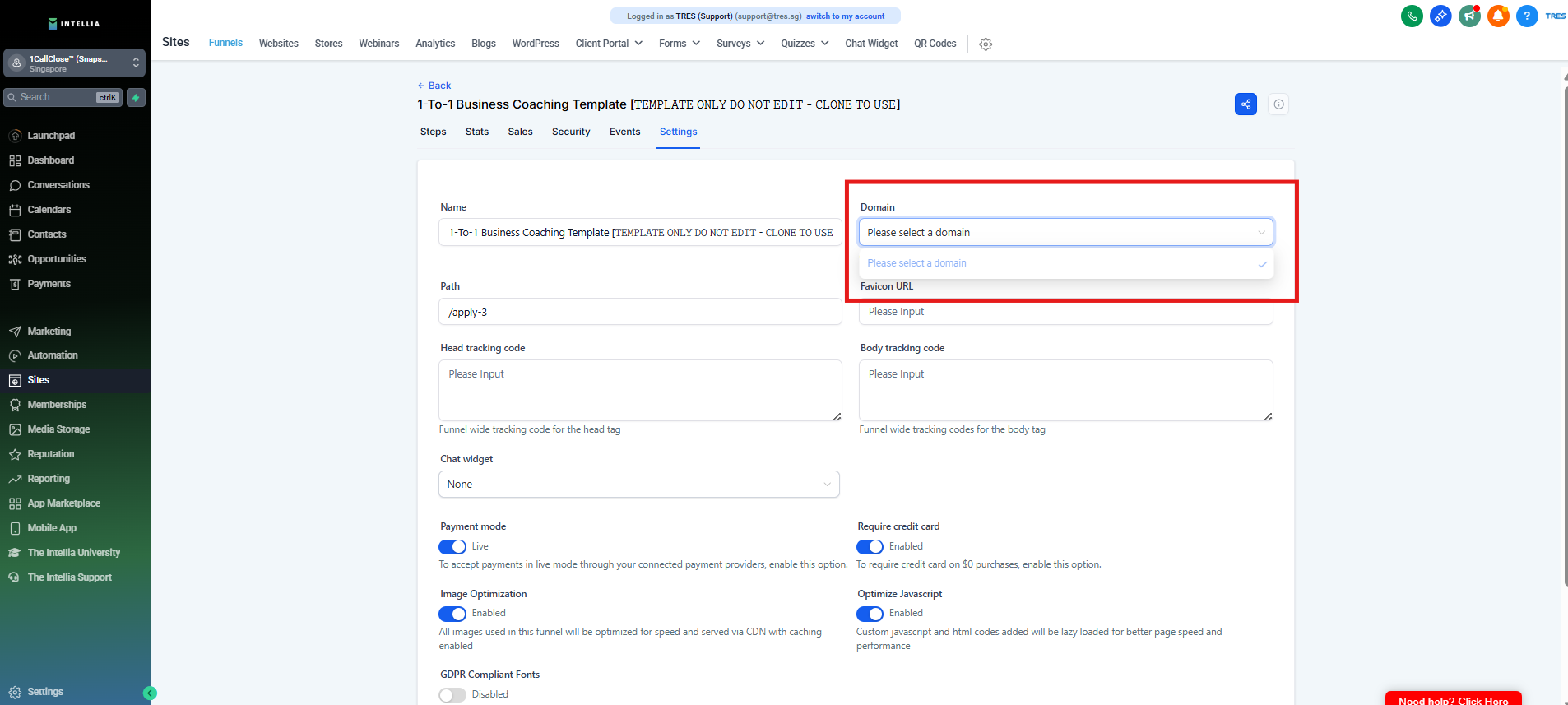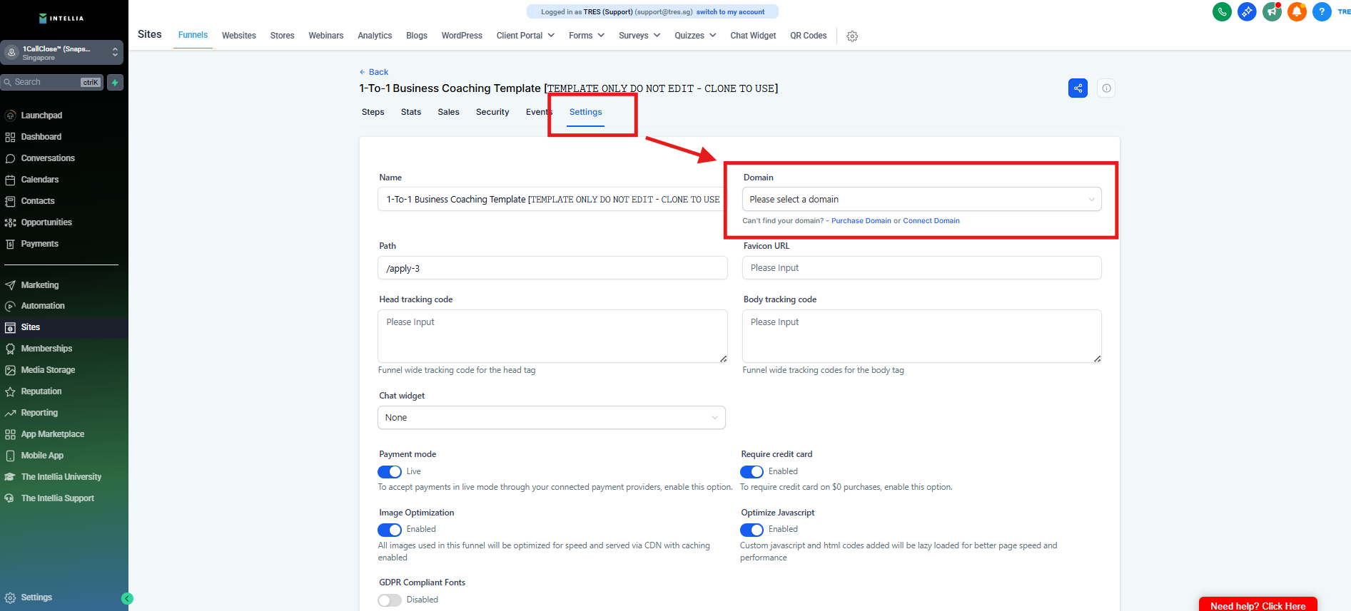 Step 4 : Select the domain you purchased specifically for your funnel campaign.