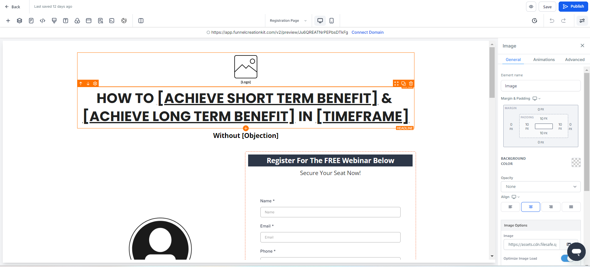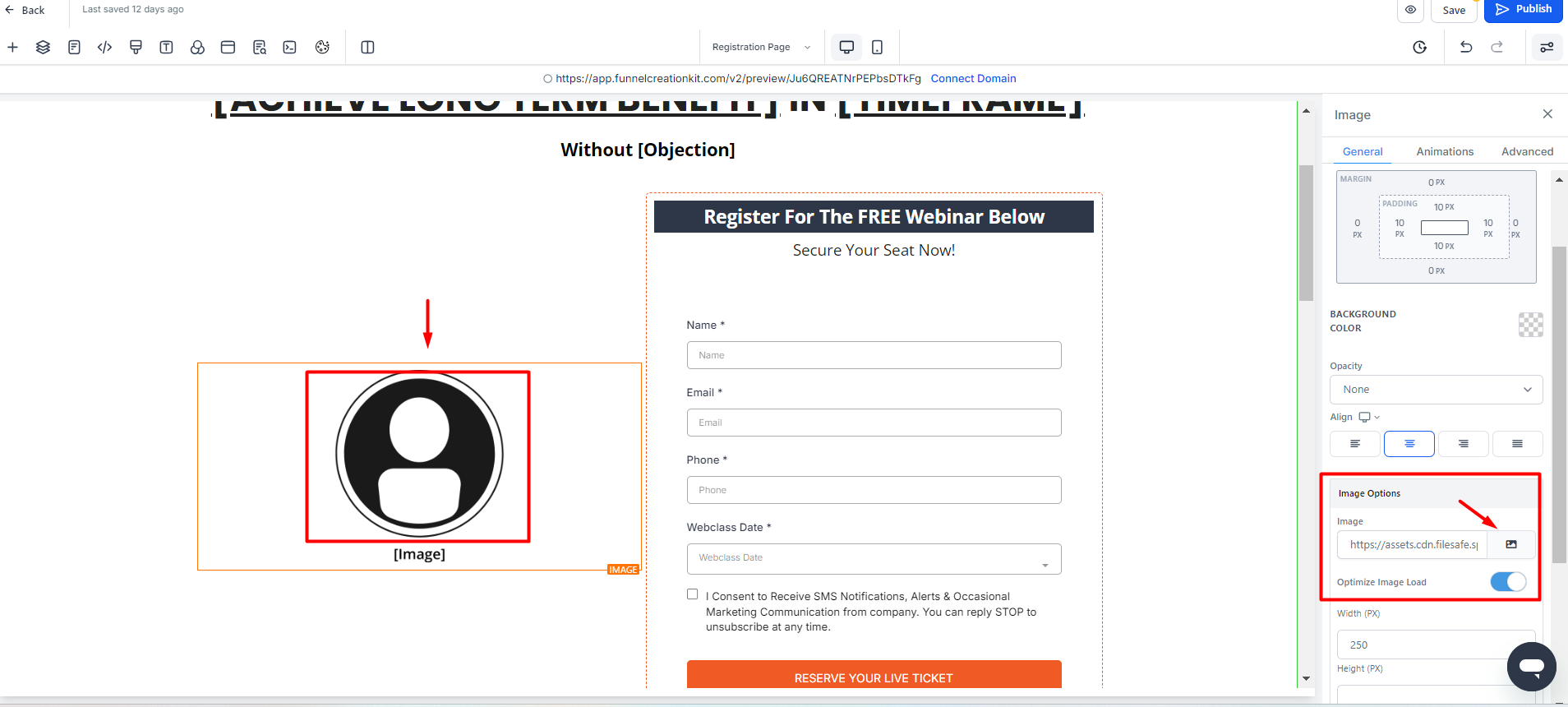 Step 3 : Click on the image placeholders throughout the funnel to replace your media.