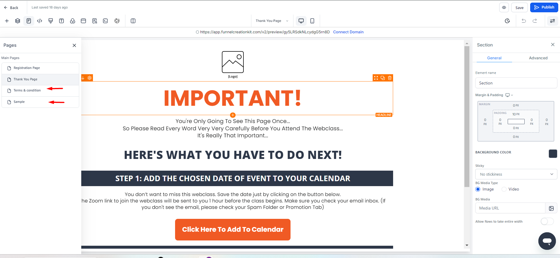 00:00 - 00:32 | Navigate your Webinar Funnel Builder