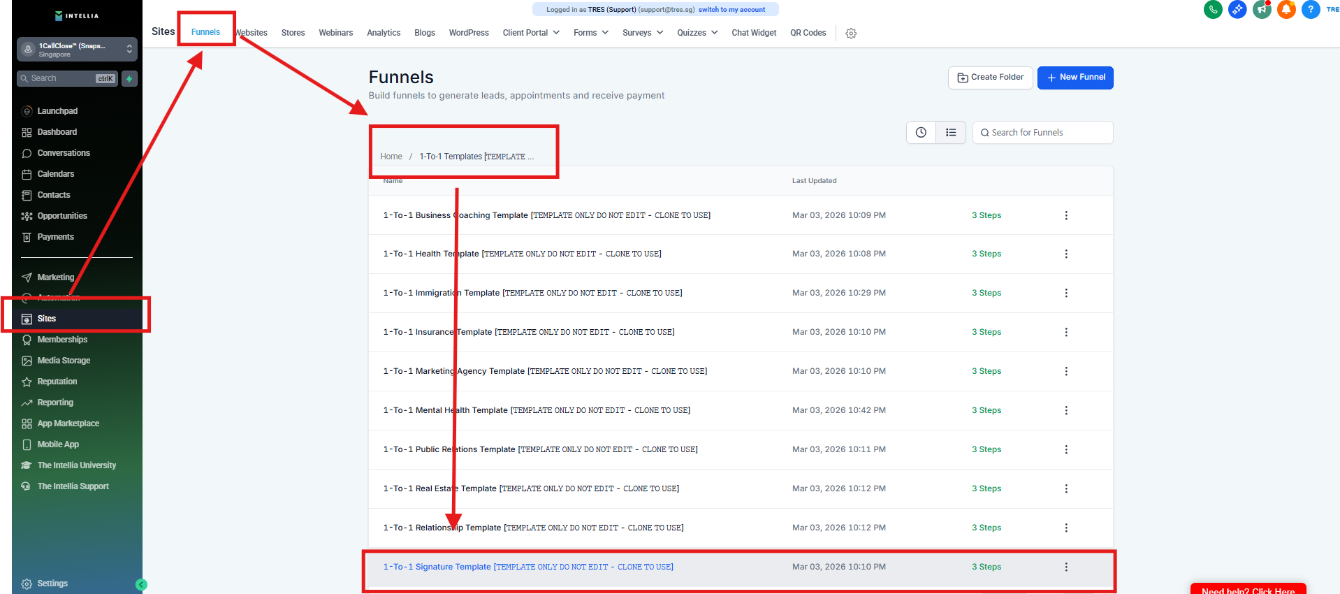 Step 1 : Navigate to your Sites >> then go to the funnel that you are working on >> Click to view the funnel
