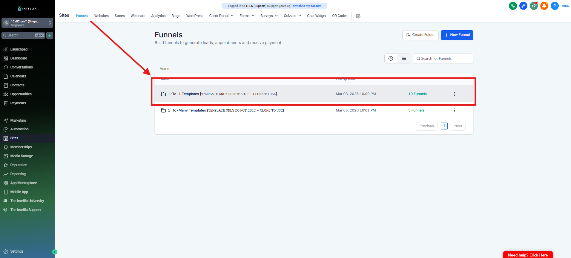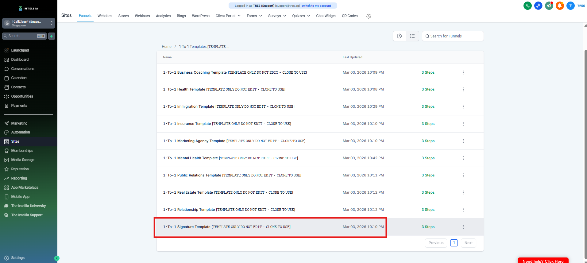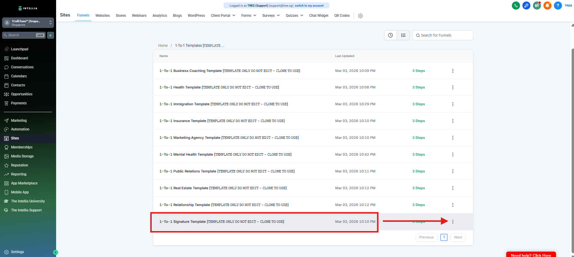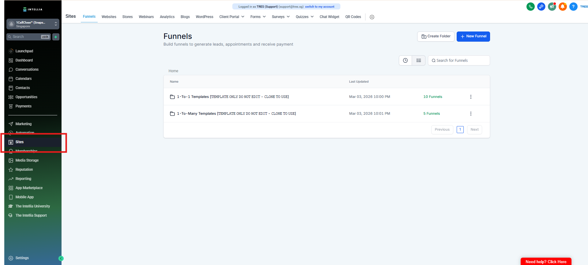 Step 5 : kindly go back to your Account > Go back to the Sites > click the Funnel > click the 1 Call Close Funnel You Clone > on the Funnel Builder, you will see the Settings