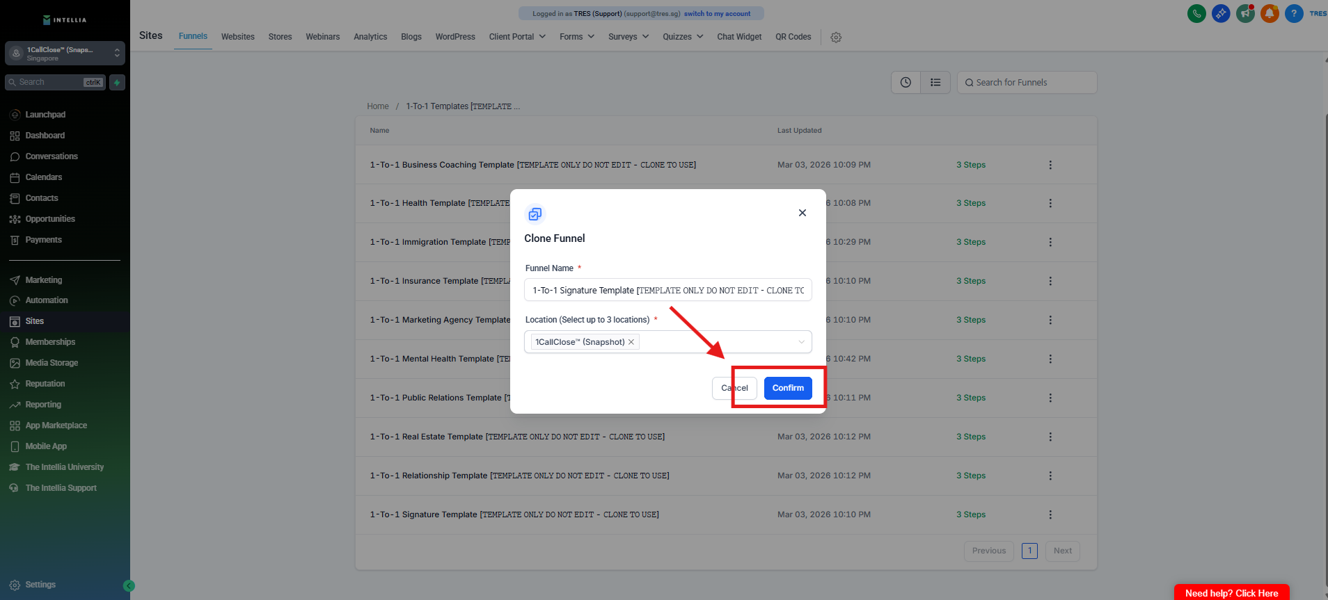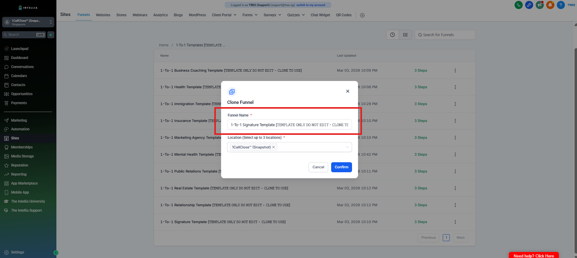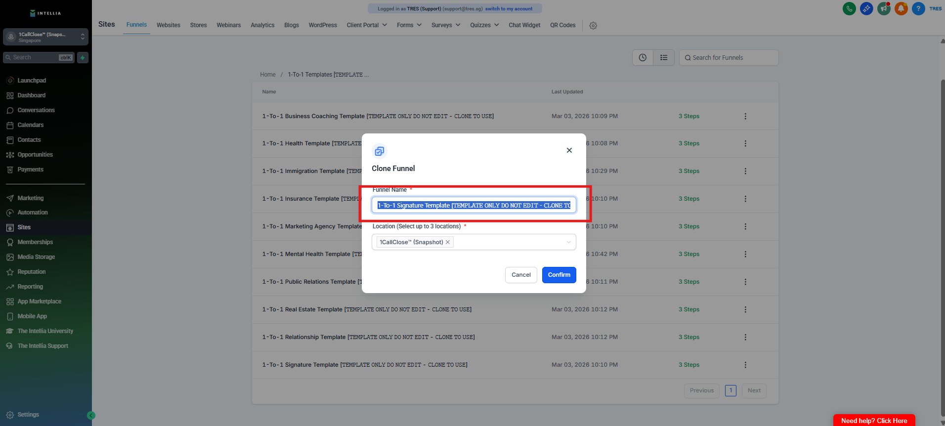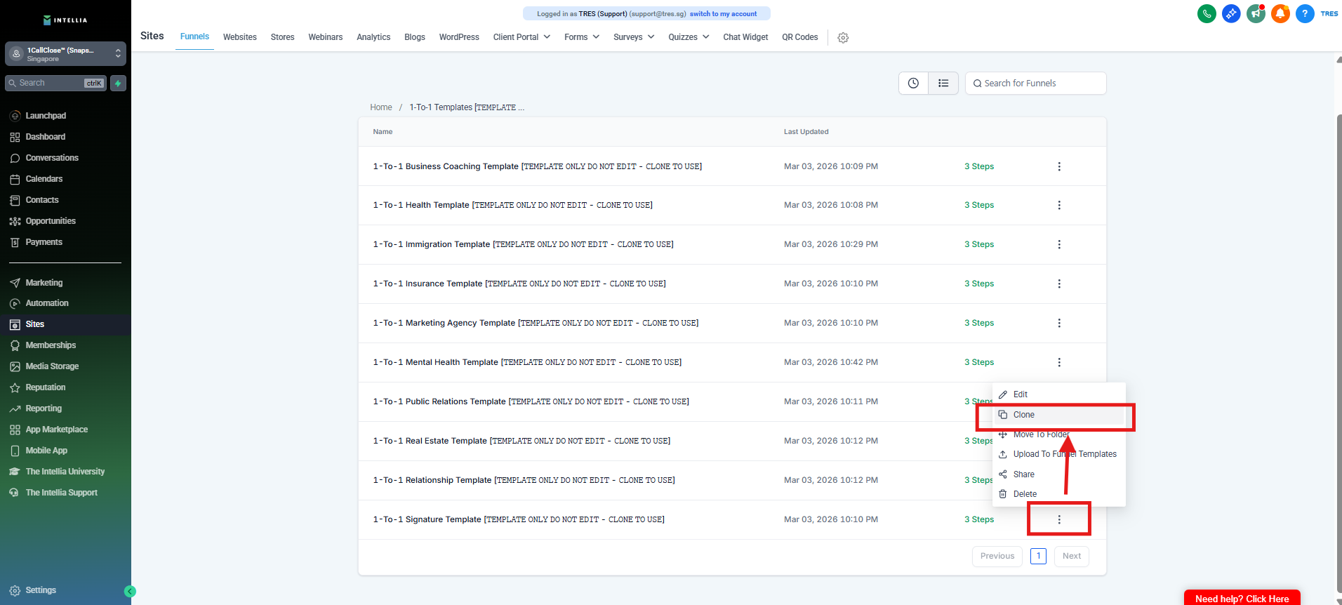 Step 5 : kindly go back to your Account > Go back to the Sites > click the Funnel > click the 1 Call Close Funnel You Clone > on the Funnel Builder, you will see the Settings