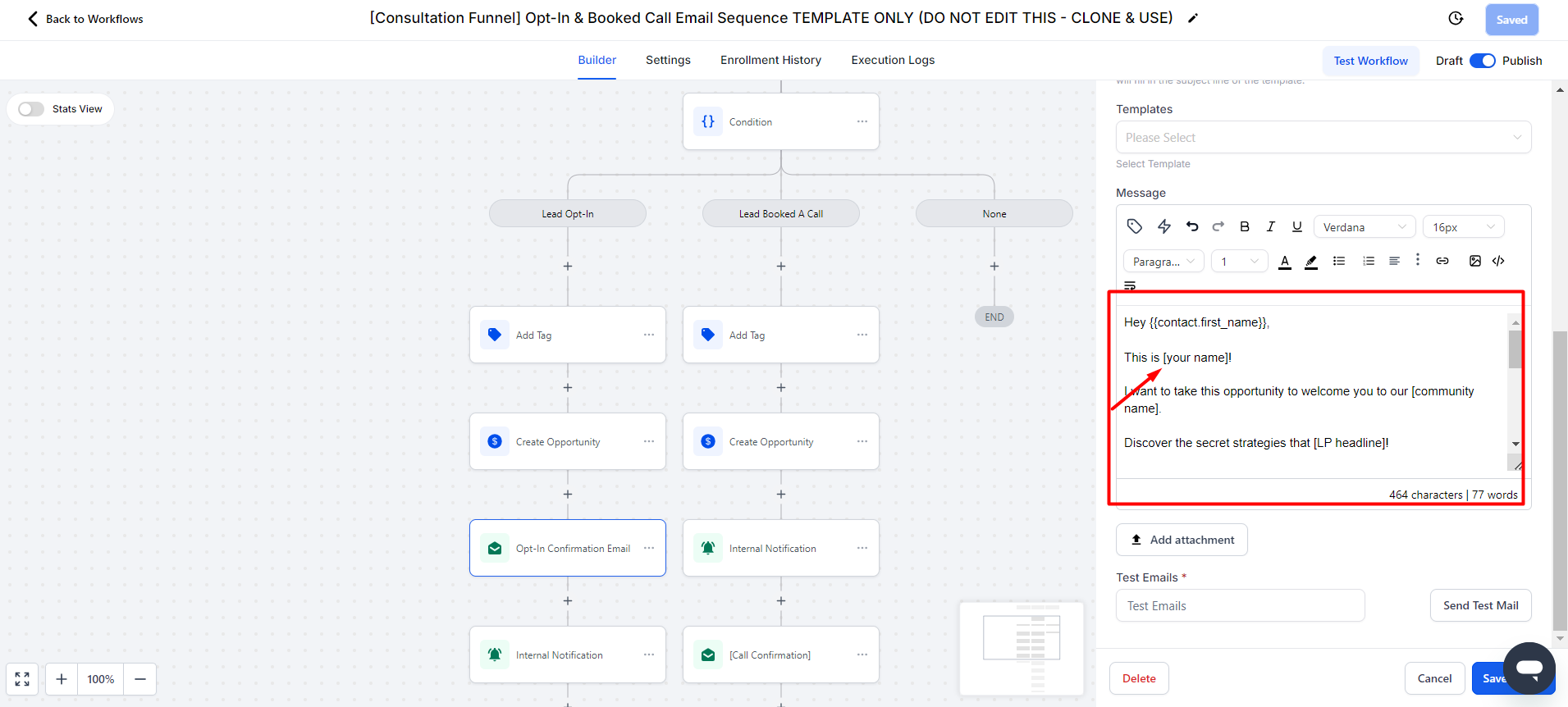 Step 6 :Repeat the process for all the Emails in the Workflow.