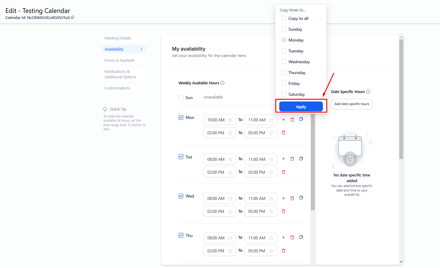 Step 26 : Once you've set the timing, click the copy icon to apply the same settings to other days of the week.
