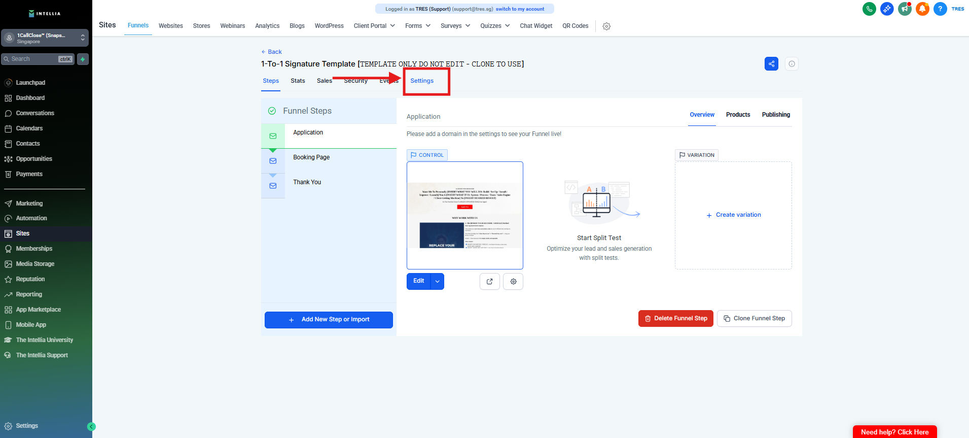 Step 1 : Navigate to your Sites >> then go to the funnel that you are working on >> Click to view the funnel