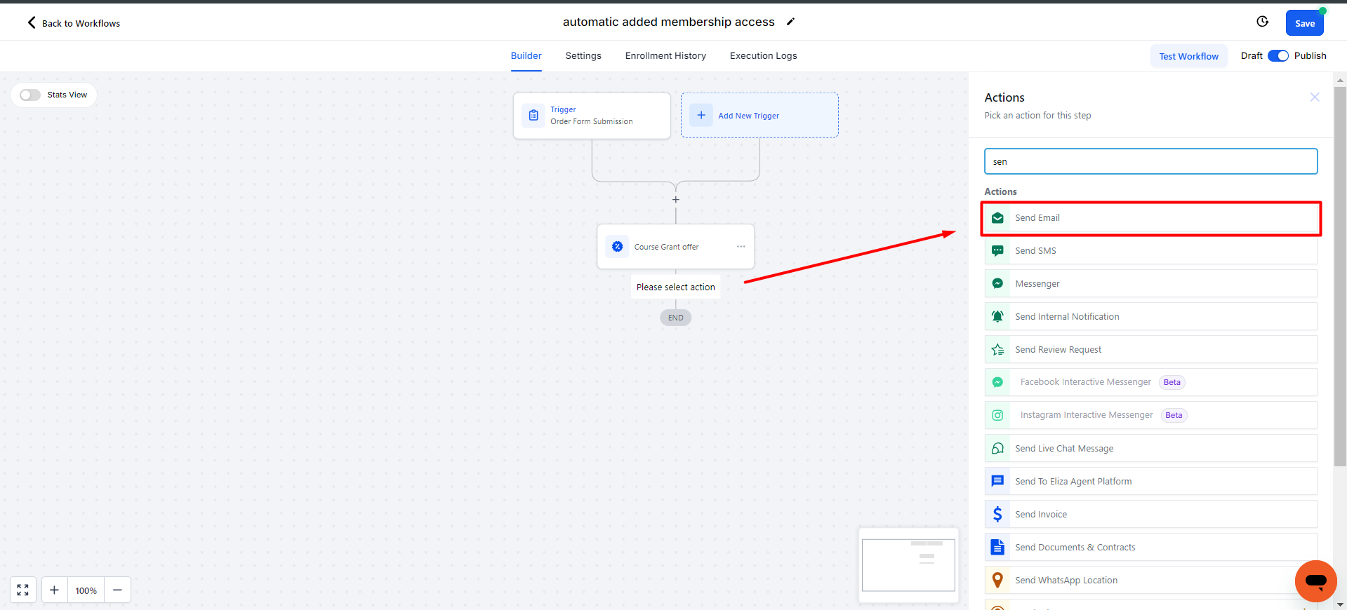 This will automatically enroll the user in the membership course after they complete the trigger action.