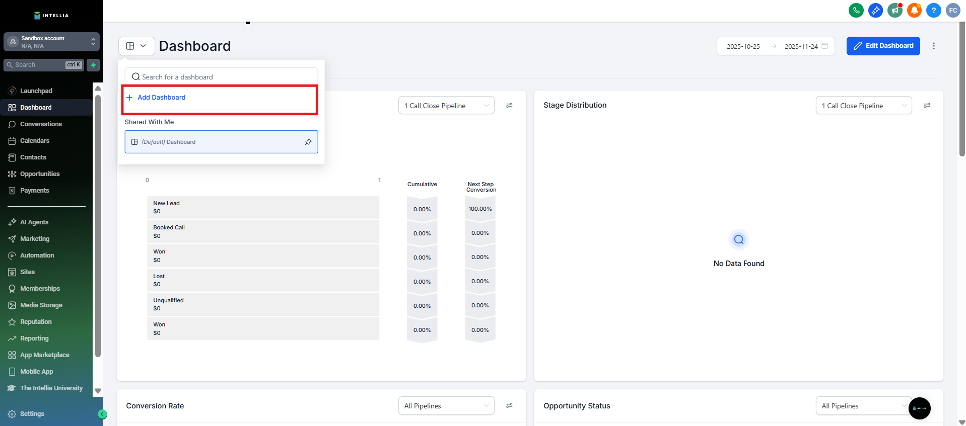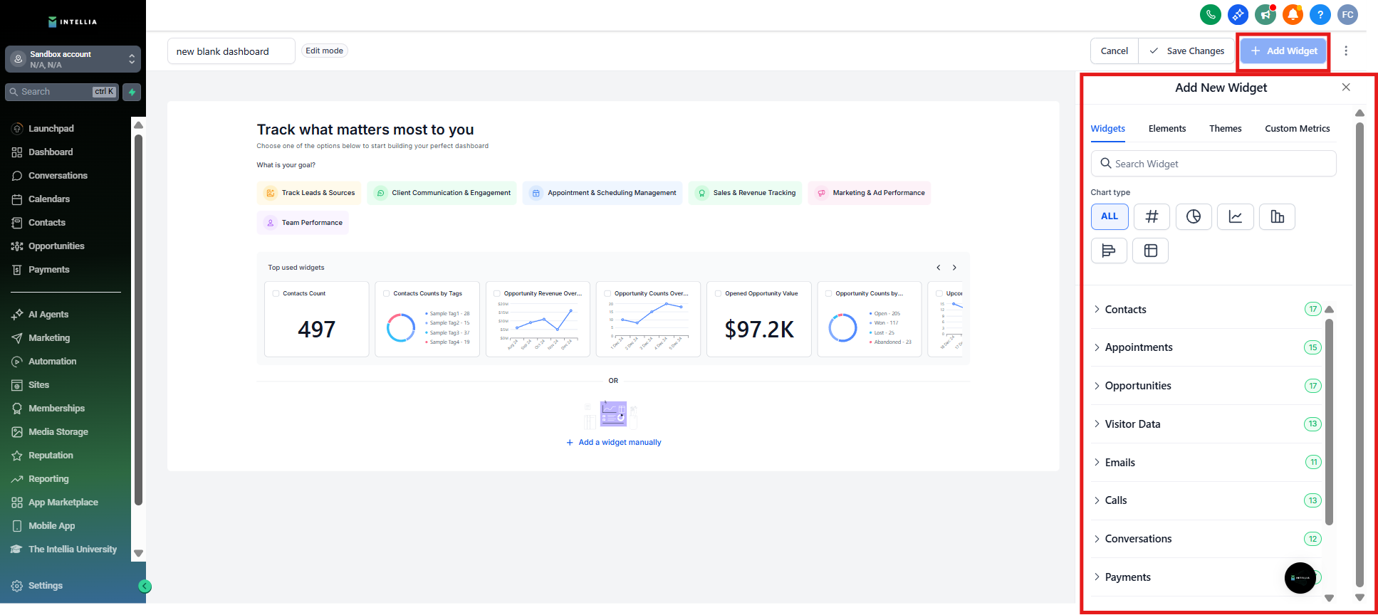 Custom Dashboards is a configurable analytics space in each sub‑account where you can track KPIs from contacts, appointments, opportunities, calls, revenue, and more. You control the layout, the widgets you add, the metrics they use, and even the dashboard’s look and automated report delivery.