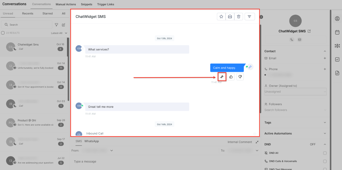 This feature is accessible for all AI messages, AI workflow actions, and bot trial messages in your conversations.