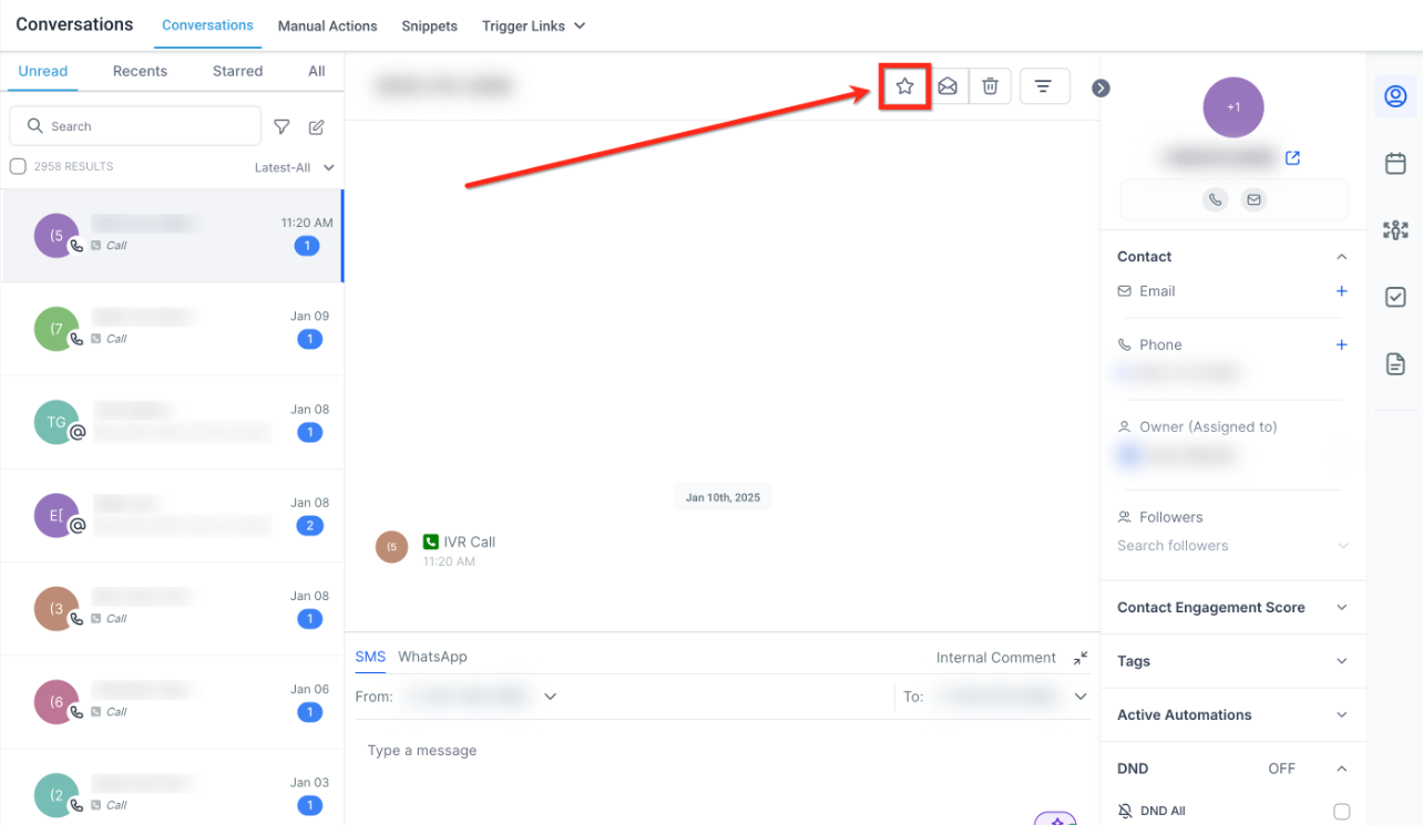 In the Conversations panel, click the Star icon next to a conversation.