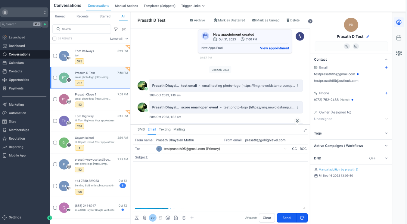 Users can now add, edit, and manage contact details seamlessly, covering everything from name, phone number, and email, to owner details, tags, campaign associations, and the all-important DnD (Do Not Disturb) settings. It's a one-stop-shop for keeping your contact database up-to-date without missing any ongoing conversation.