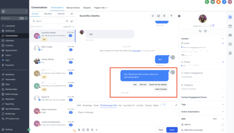 Facebook: You can add Quick Replies alongside buttons and images, providing more options for customer interactions.